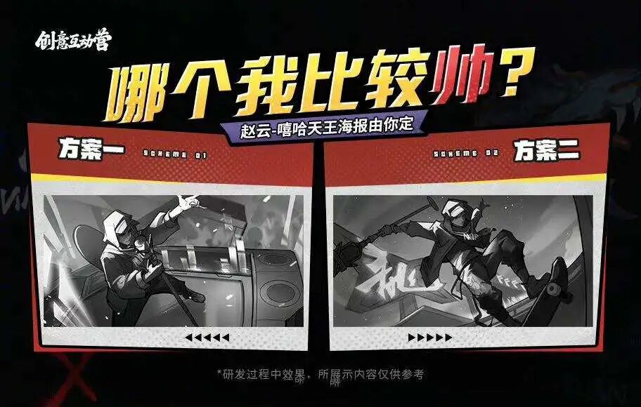 赵云的嘻哈天王优化的效果让玩家很是惊艳,这次的共创活动给到了两款海报方案,两款海报方案都非常的帅气非常的有个性,不过相比较方案一,方案二的海报更加能够体现出嘻哈的感觉,所以更多的玩家喜欢方案二,目前的投票结果也是如此,方案二的票数远远领先于方案一。