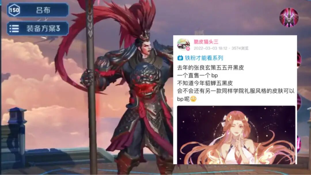 对于个消息,小辣椒认为不太可能,因为今年的五五开黑节皮肤是学院礼服或者制服风格,而吕布作为一个男英雄,并且还是非常霸气的那种,肯定是不是个出这个系列的皮肤的。所以这款免费皮肤更有可能会给到一位女英雄,而不是吕布。