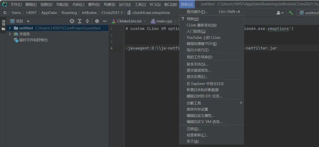 首先进入jetbrain软件的任何一个,我拿clion举例