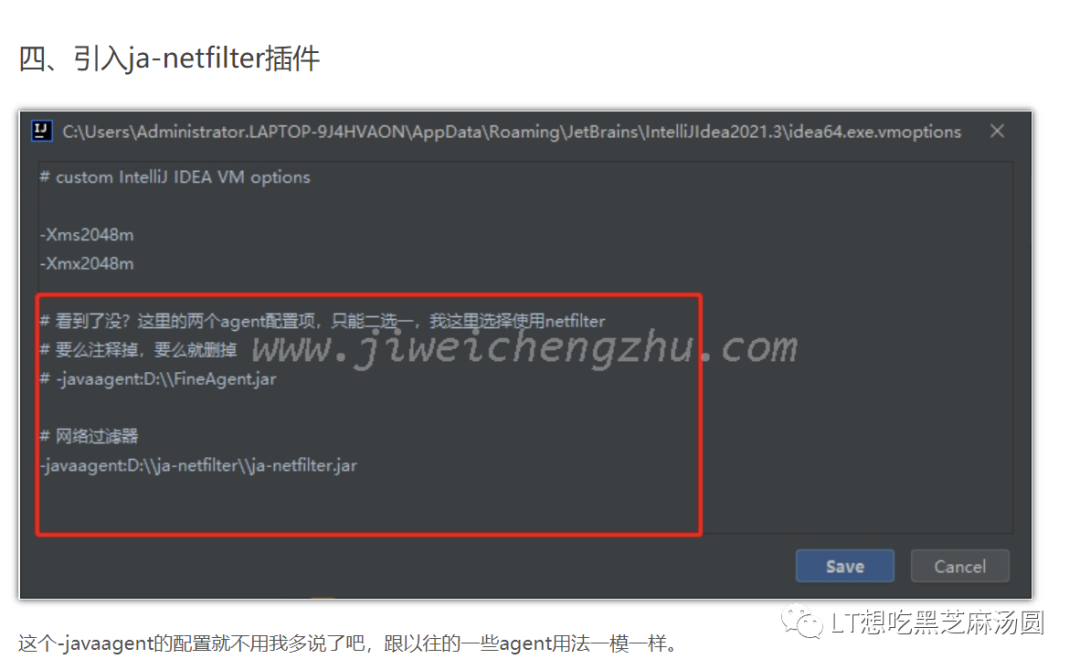 比如我放在D盘里,把下边这个图里的路径复制到-javaagent:后边,