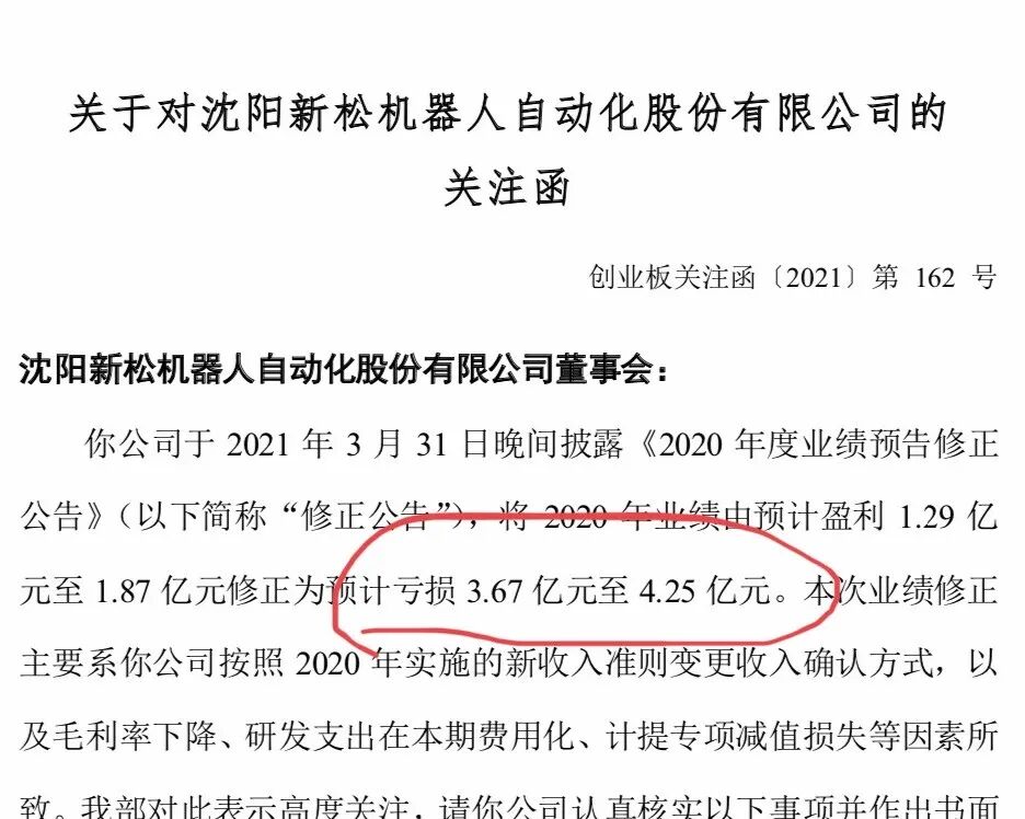 刚刚新松机器人发布延期公告:“关于延期披露2020年度报告及2021年第一季度报告的公告”,前前后后我又仔细看了下,原来在1月29日,新松发布预告称2020年净利润高达1.8亿,但在3月31日发布业绩修正,实际结果是亏损4亿多,业绩修正原因是因为财务人员对准则理解不准确,随后深交所对新松发布了关注函,要求解释前后业绩巨大落差的原因,结果就在刚刚,新松机器人又发布了一个延迟发布报告的公告。