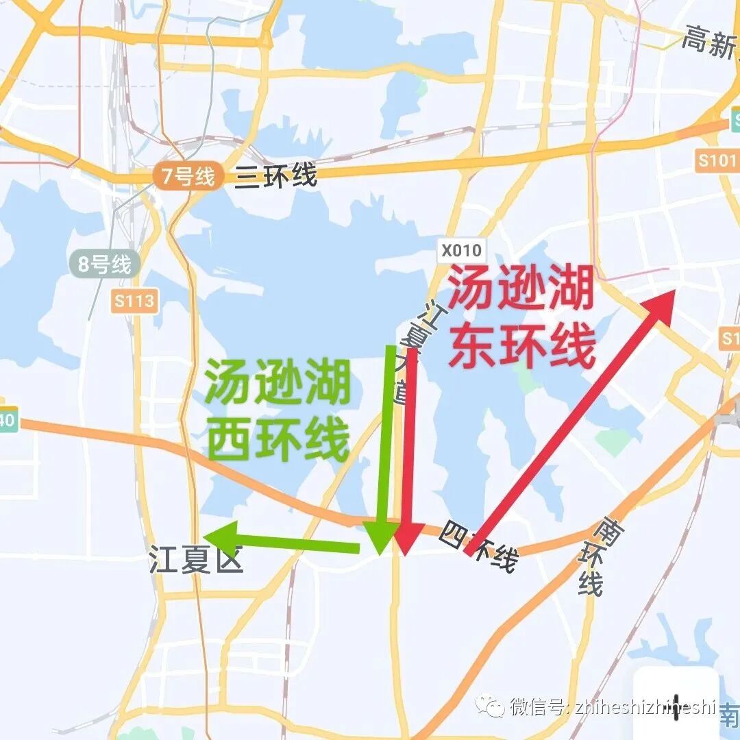建议开通经庙山江夏大道的汤逊湖湖西环线与汤逊湖东环线,如上图所示,如此一来:
