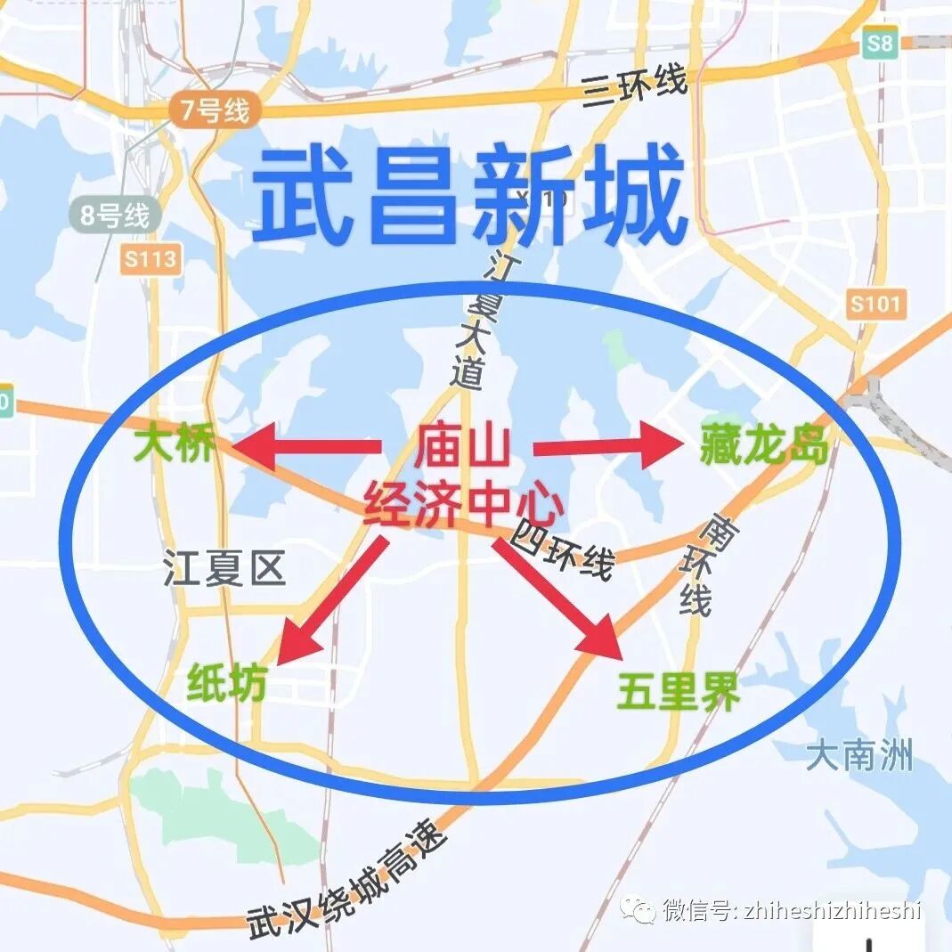 院长昨日发布了以庙山为中心,联合纸坊、大桥、藏龙岛、五里界的“五指山经济圈”战略,今再度升级: