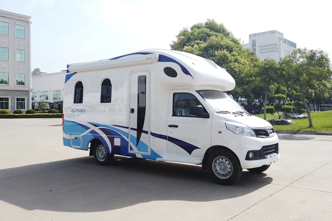 今天小编为您介绍一款出自新飞房车旗下基于福田祥菱底盘改造、采用大额头造型、无拓展布局结构的自行式C型房车,这款房车名为新飞祥菱经典4座版,官方指导价14.38万元起售。