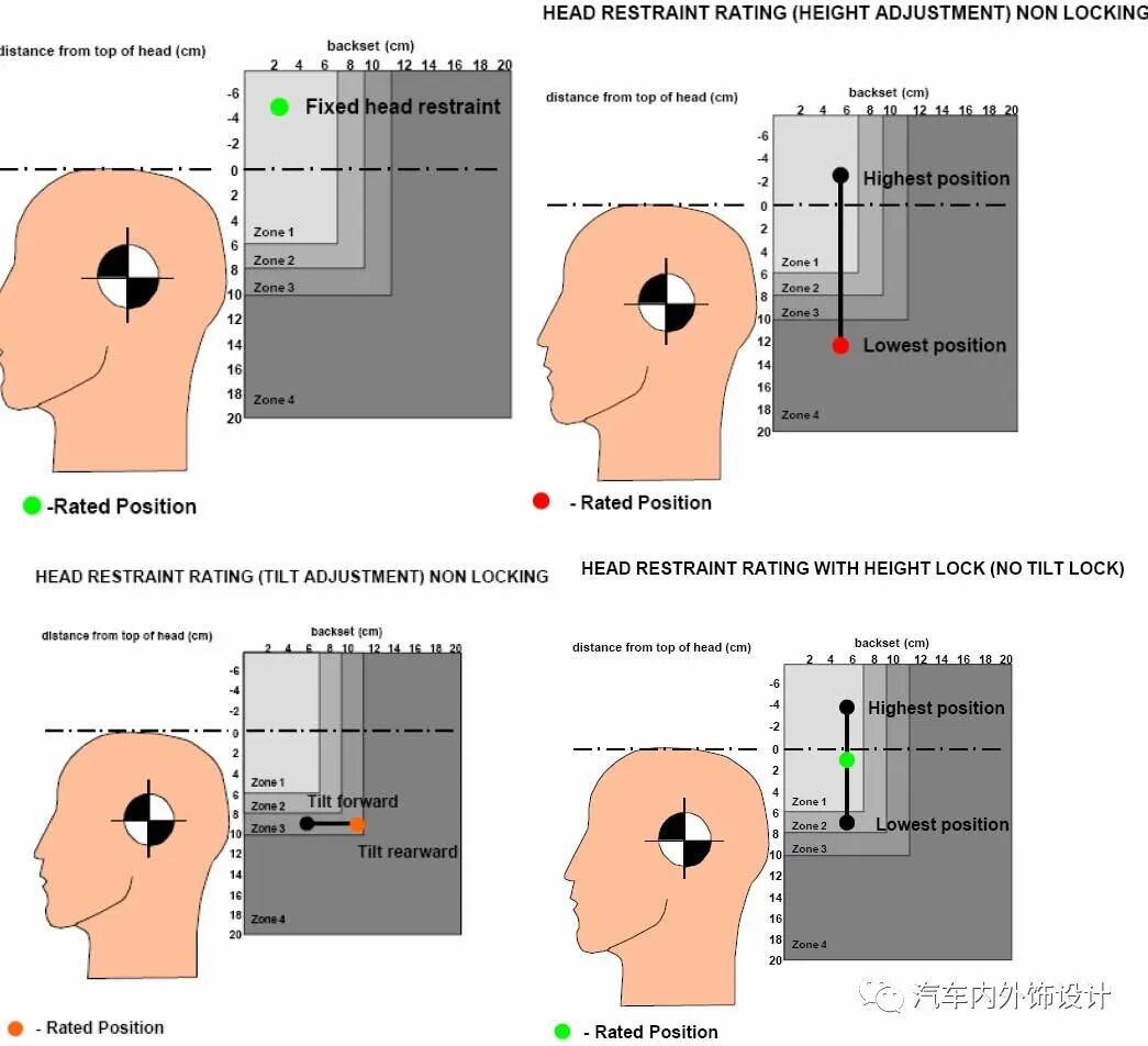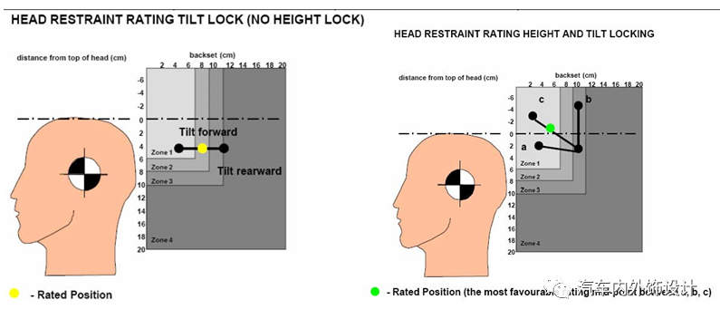 c、 除前排座椅以外的其他座椅头枕可调到高度低于750mm 的位置,但要向乘员清楚地说明该位置不是头枕的使用位置;