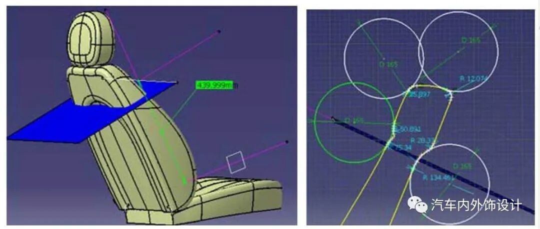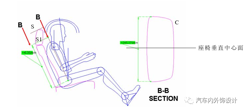 当座椅处于设计基准状态时,布置人体模型原则上不能与前排座椅干涉。