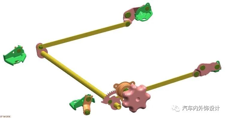 此功能件主要针对驾驶员座椅,考虑到不同身材驾驶员的操纵舒适性以及视野安全性,对驾驶员坐垫高度进行调节的机构件。按高度调节方式分,有前后整体调节式和前后分别调节式;按结构分,有丝杠式、螺旋弹簧式、油缸式、四连杆式等多种,广泛应用的是四连杆式。性能满足《高度调节器耐久性试验方法》。高度调节器结构见下图: