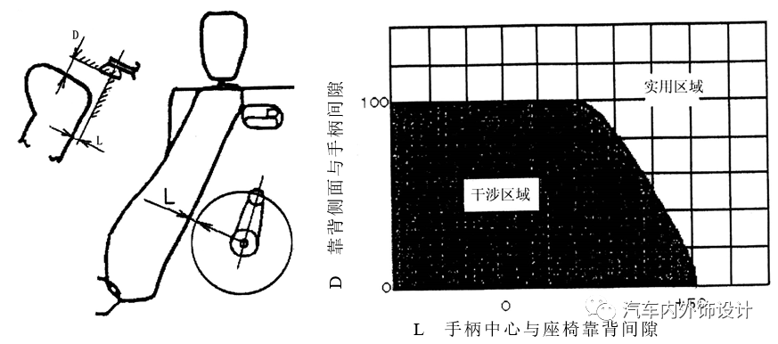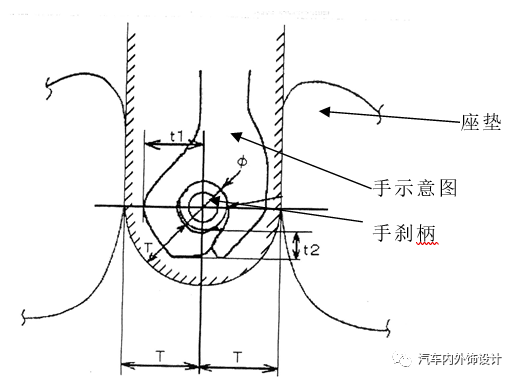 5)座椅靠背与玻璃升降手柄间隙(座椅处于设计基准状态)