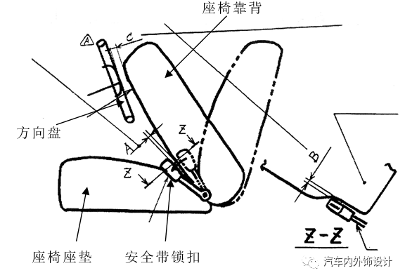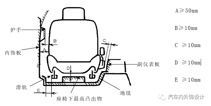 在座椅滑动全程中,座椅与换档杆 最大包络线间保证A≥5mm。