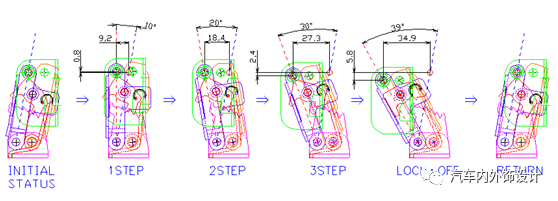 例如,Link53mm时(9mm*3Step,共27mm)每Step的移动变位演示图如下: