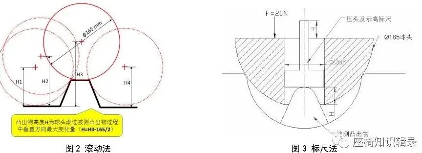 凸出高度H的测量:滚动法(图2)或标尺法(图3)。