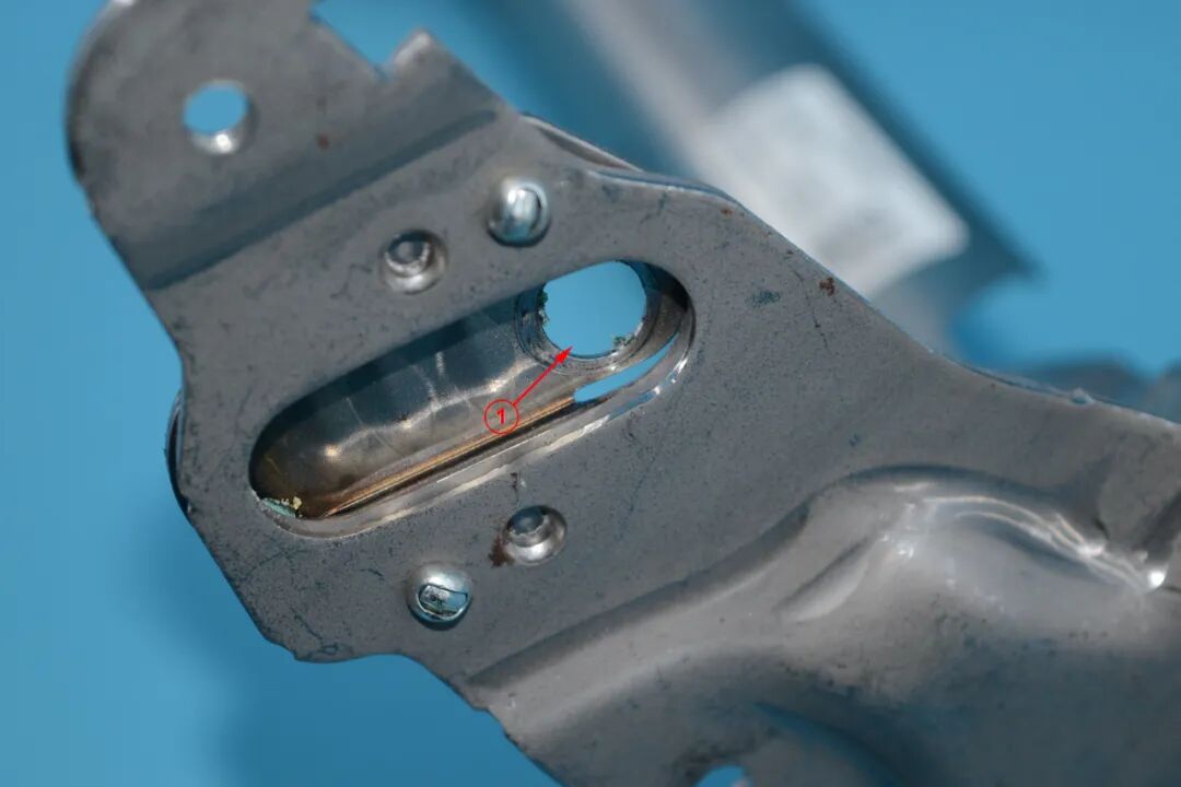 吸能片材料据说是镁铝合金(此处不确定)? 用铆钉固定住。