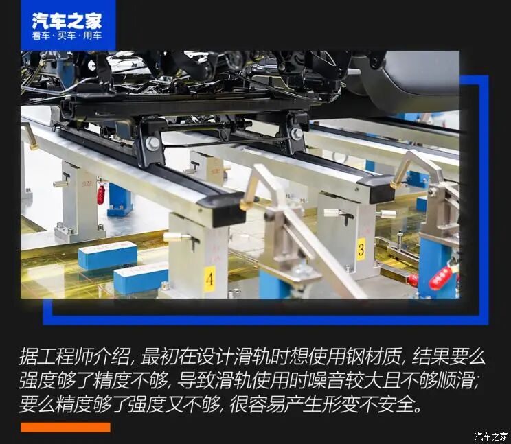 可前后左右四方向移动的第二排座椅是凯捷主打的宣传点之一,所以滑轨也是这款车在开发过程中遇到的比较复杂的难题。