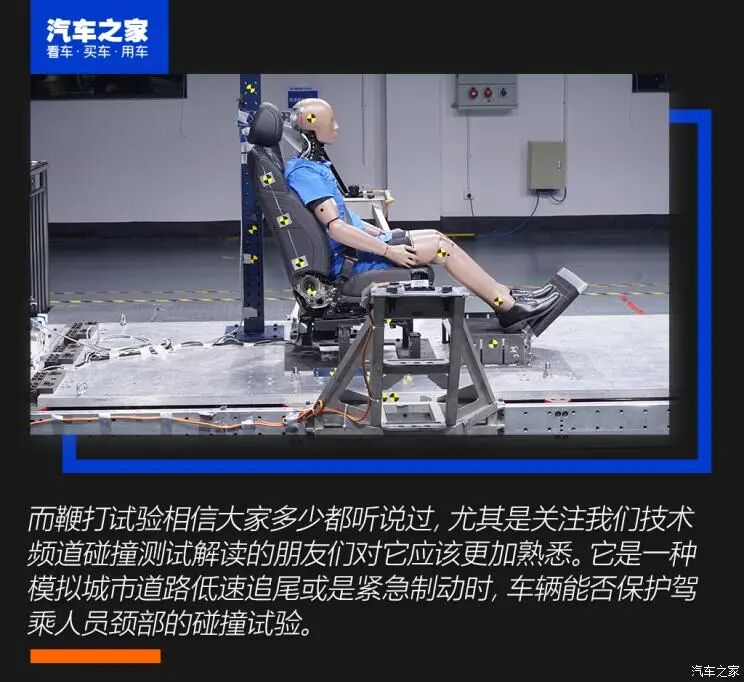 鞭打试验也是通过加速模拟碰撞试验台车系统来实现的,只不过撞击方向改为了座椅后方。它主要考量的是头枕的设计是否能够应对突发的位移。