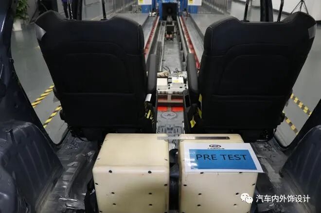 发生车祸或紧急刹车时,由于惯性作用,行李厢中的行李会继续前移与中/后座椅发生碰撞,如果座椅靠背/头枕及其固定点强度不够,会对乘员造成严重伤害。行李厢冲击试验正是用标准加载块模拟行李对座椅进行动态冲击,用来验证座椅及其固定点的强度能否保护乘员生命安全。五菱凯捷中排乘员座椅、座椅头枕及靠背在试验过程中均未超过法规前移界限。座椅锁止标记未错位,试验中及试验后均锁止在原位。