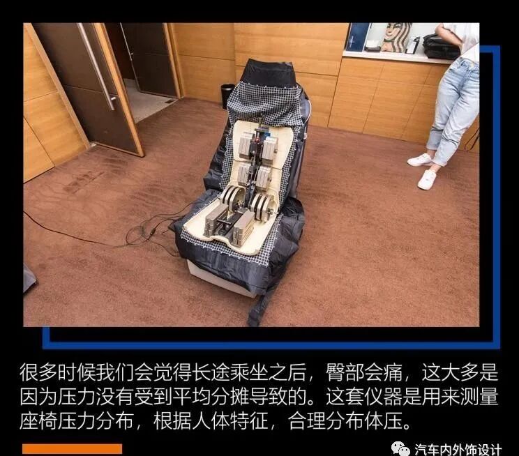 在会场的另一角,还展出了另一种仪器,不知道的人以为是健身器材,原来这个设备是用来测量压力分布。大家或许有这种经验:长途乘坐的时候屁股特别痛,这通常是压力集中在臀部所造成的,因此,在设计椅子的时候,还必须考量到压力分布的情况,这样才能耐得住久坐。