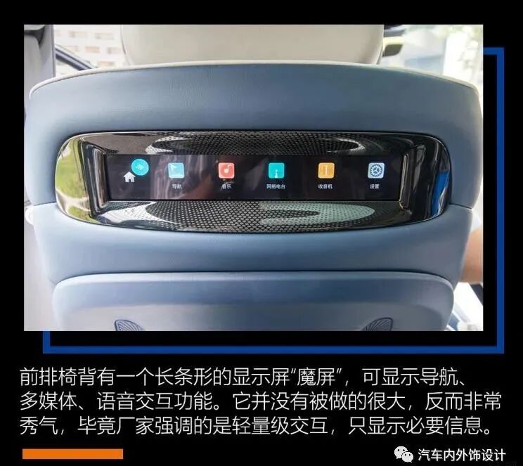 “魔吧”、“魔屏”,这两个充满魔性的名词代表iMAX8的两种特异功能。魔屏为在第一排座椅椅背上,其实就是一块细长的屏幕,所显示的内容很简单,没有什么不必要的内容。更魔性的则是魔吧,当你呼喊它,或是你说你口渴,它会自动来到你面前。