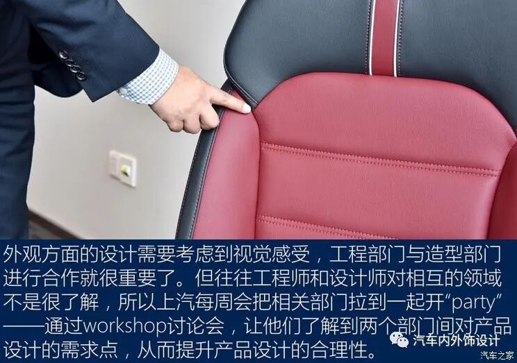 座椅要舒适,首先要实现视觉和触感上的满足,这就需要内饰设计师团队出马了。但座椅是一个系统工程,其中还设计座椅的安全性等多方面因素。因此虽然造型上的事情归设计师管,但也需要和工程部门通力合作。为了解决设计师不懂工程,工程师不懂设计的问题,上汽每周会把相关部门组织到一起进行交流。便于工程师和设计师理解相互的设计理念和工程原理,让产品设计更为合理。