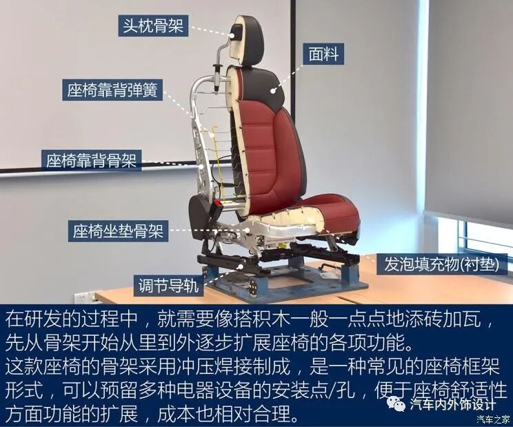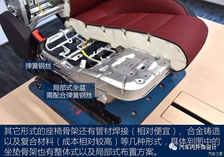 所以一款座椅的开发需要从骨架开始做起,常见的座椅骨架有管材焊接、冲压(板材)焊接、合金铸造以及复合材料等几种形式,其中后排座椅多采用整体钢丝结构。从价格和所能搭载的扩展功能来看,管材的成本和附加功能都是最少的,冲压和铸造比较相仿但前者成本要低一些。最贵的应该属符合材料了,其中比较有代表性的就是以碳纤维为主的座椅了,这种重量轻强度大的材料被广泛用于超跑、F1赛车等领域。