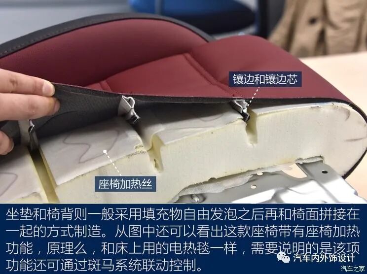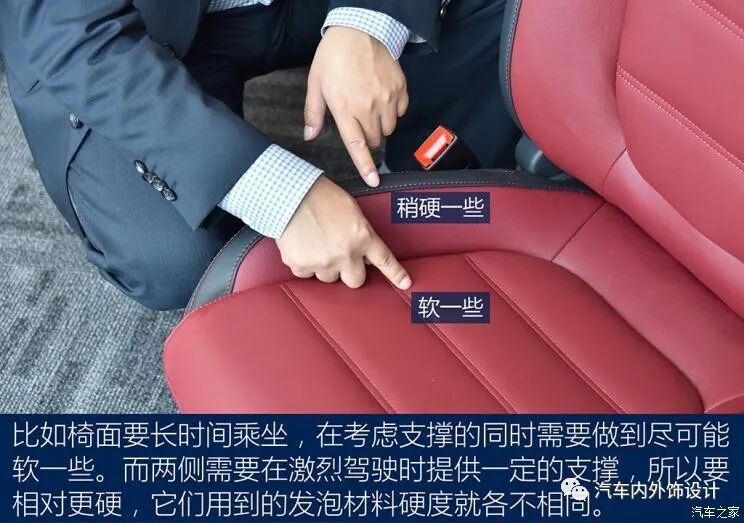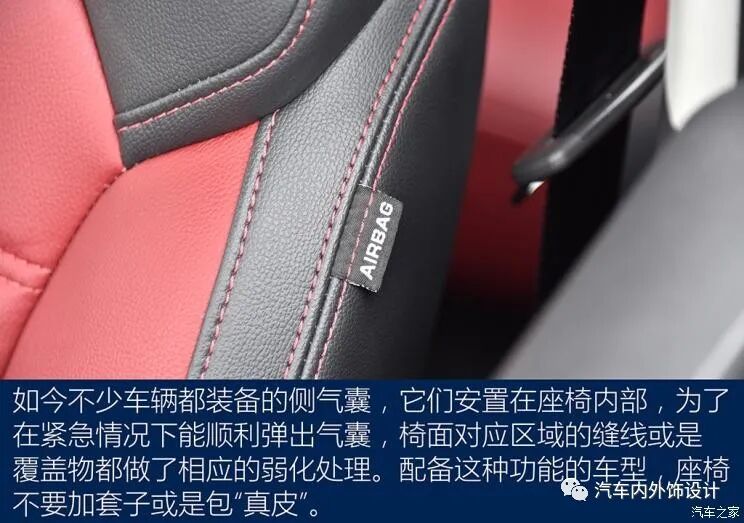 说句题外话,这次的座椅中没有展示出侧气囊,但现在不少车辆都配有侧气囊。配有这一安全装备的车型在座椅椅面相对应区域都做了撕裂线或是缝线弱化处理,这样才能在紧急时刻保证气囊顺利弹出。因此,有这项功能的座椅,皮不能乱包,套也是不能用的……