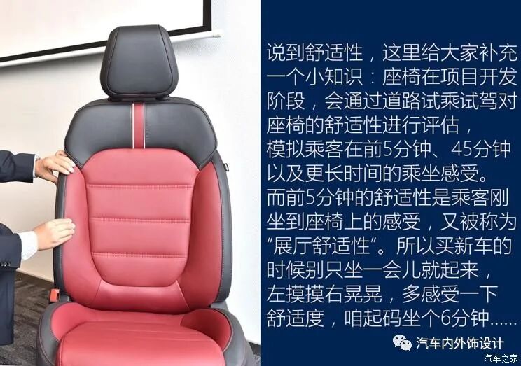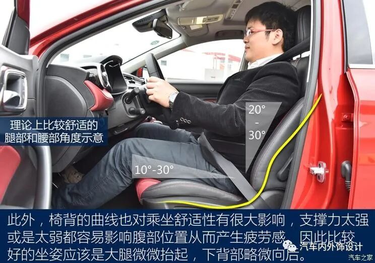 但是合适的腿部支撑也是同样重要的,不论是前排还是后排,如果长时间让腿部悬空的话,也会增加不少疲劳感让乘坐的舒适性降低,因此为座椅设计一个合适的坐垫和靠背形状就很重要了。