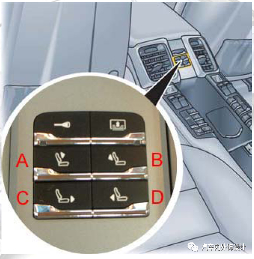 在配备了带记忆功能组件的14向电动座椅的车辆上,除驾驶员记忆功能组件设置之外,车钥匙与驾驶员侧车门的个性化按钮1和2上还存储了许多车辆设置,如空调或多功能显示器。