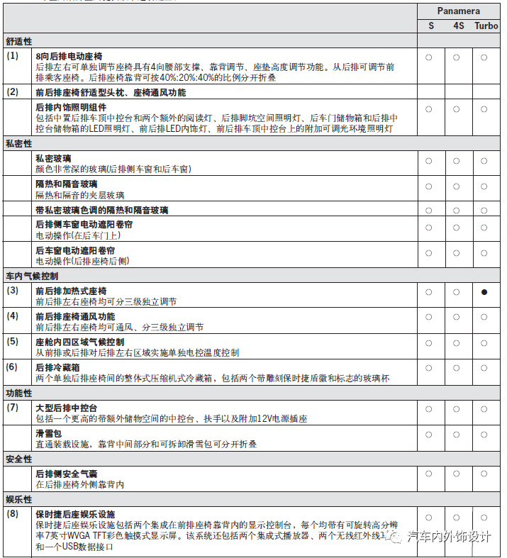 保时捷后座娱乐设施包括两个集成在前排座椅靠背内的显示控制台,每个均带有可旋转高分辨率7英寸WVGA TFT彩色触摸式显示屏。