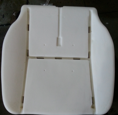 实现的方法是采用乘坐区域和两侧区域分别浇注,通过模具摆放角度、在两侧翼与乘坐区域之间增加隔料槽、泡沫两侧加嵌件等方法来达成产品双硬度或多硬度区分。