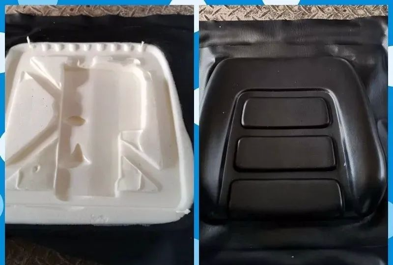 浇注前,先把面料放置在模腔内,通过抽气吸附,使其完全贴合,然后再浇注PU料,发泡后取模的PU制品表层就与面料紧密的贴合在一起了。