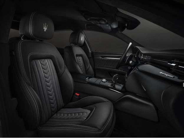 杰尼亚用丝绸内饰强调了总裁GranLusso的灵魂,这种内饰采用了业界独创、具有专利的丝绸面料,应用在座椅、车门、车顶和遮阳板上。杰尼亚丝绸面料上带有精美的手工刺绣、大型人字纹装饰和交错的凸条花纹,显得格外精致。这种精致、豪华的内饰还表现在座椅头枕上,这里用具有对比效果的缝线刺绣了一个三叉戟标志,工艺非凡。