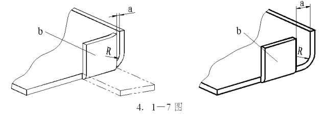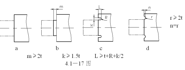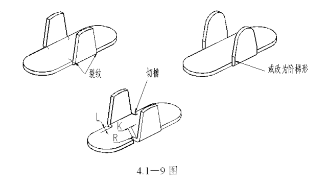 6 防止侧面(梯形)弯曲时产生裂纹或畸形。应设计预留切槽,或将根部改为阶梯形。槽宽K≥2t,槽深L≥t+R+K/2。
