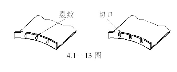 若象a图那样弯曲线和阶梯线一致,有时会在根部开裂变形。所以使弯曲线让开阶梯线如图b,或设计切口如c、d那样。