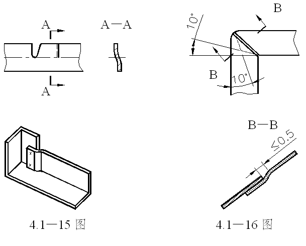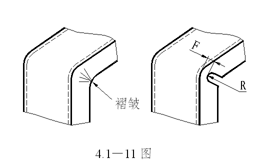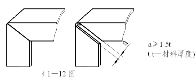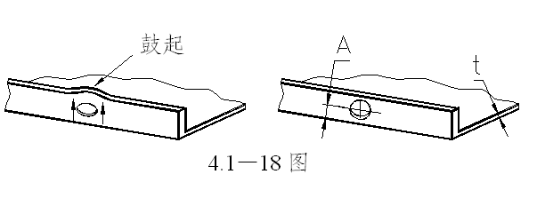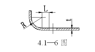 2 弯曲的直边高度不宜过小,否则不易成形足够的弯矩,很难得到形状准确的零件。其值h≥R+2t方可。见4.1—5图。