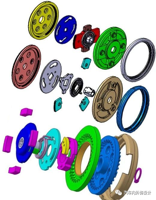 调角器一般由上、下连接板(有的叫AB板)、核心件、连接杆、手轮或调节手柄、回复弹簧等部分组成。
