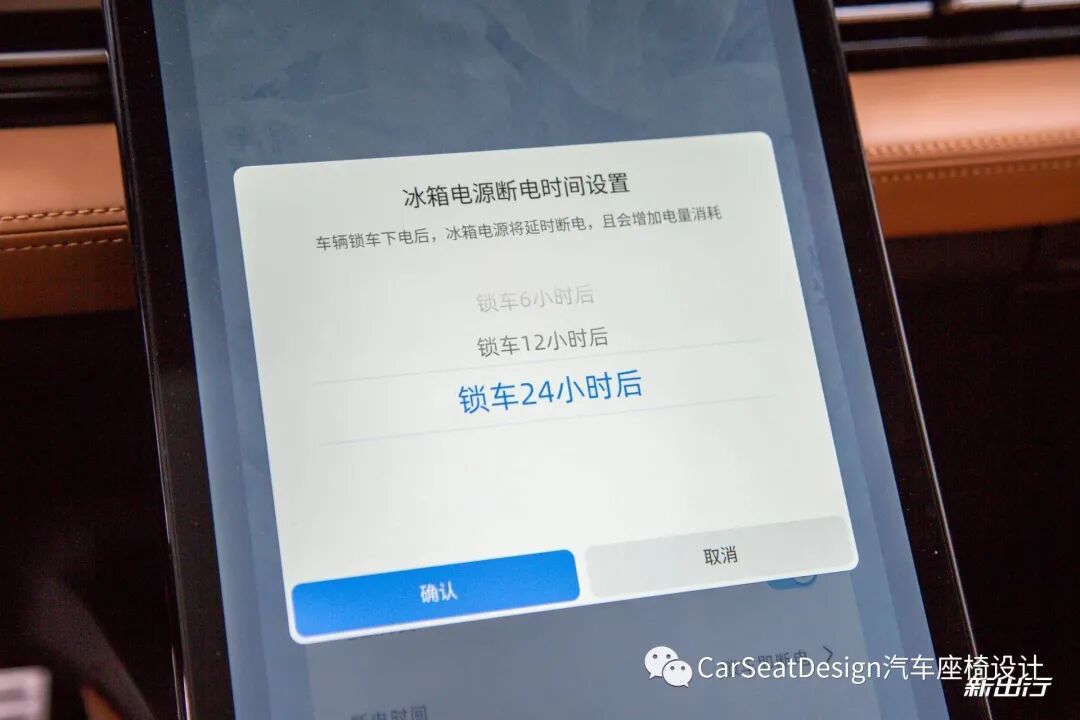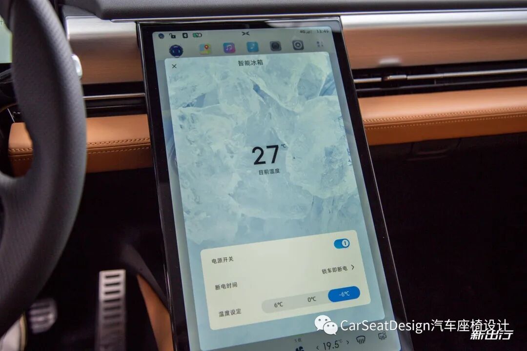 另外,无论你是否选装了冰箱,小鹏 P5 全系都不支持后排放倒,同样也不能够设置角度调节。冰箱的温度需要在车机屏里进行调节,需要连接到车载冰箱的蓝牙后才能调节。