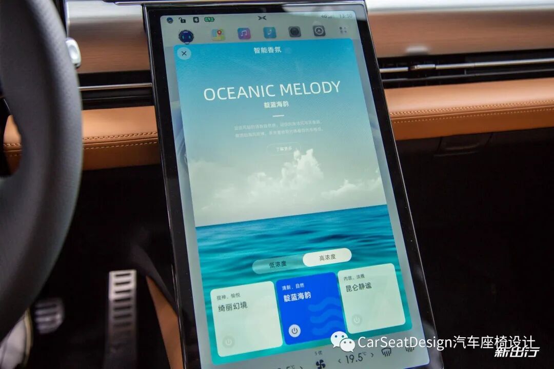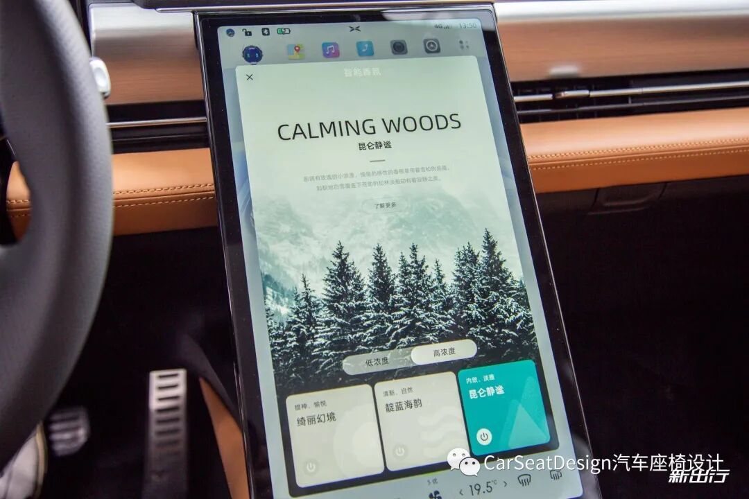说完床垫之后,我们来看看P5车上的这个香氛系统,总共有绮丽幻境、靛蓝海韵、昆仑静谧三种味道 ,小鹏官方或许还会在官方商城推出更多的味道供消费者选择。在智能百变箱内就能够对香氛系统进行调节, 有高浓度、低浓度两种调节 。