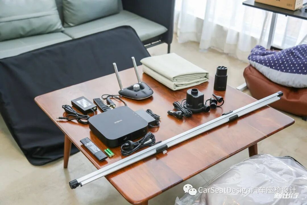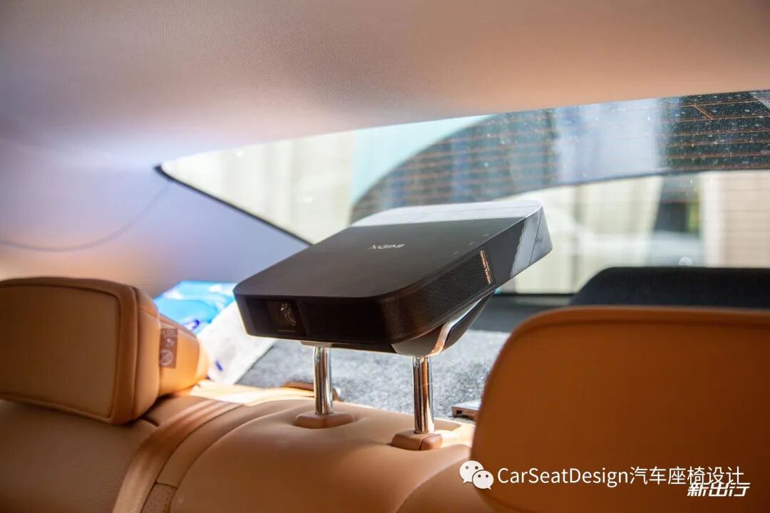 车载投影仪是小鹏与极米共同定制的 ,其实主要是下方的这一个投影支架,能够安装在后排中间头枕处,这时候再将前排的幕布装好就可以使用。这里提一点,很多用户都在问与极米合作的这一个投影仪后期能不能自己购买或自己去定制一个,这里还是建议大家选择原厂,第一有保障,第二就是这个底座确实是定制的,外边应该买不了。