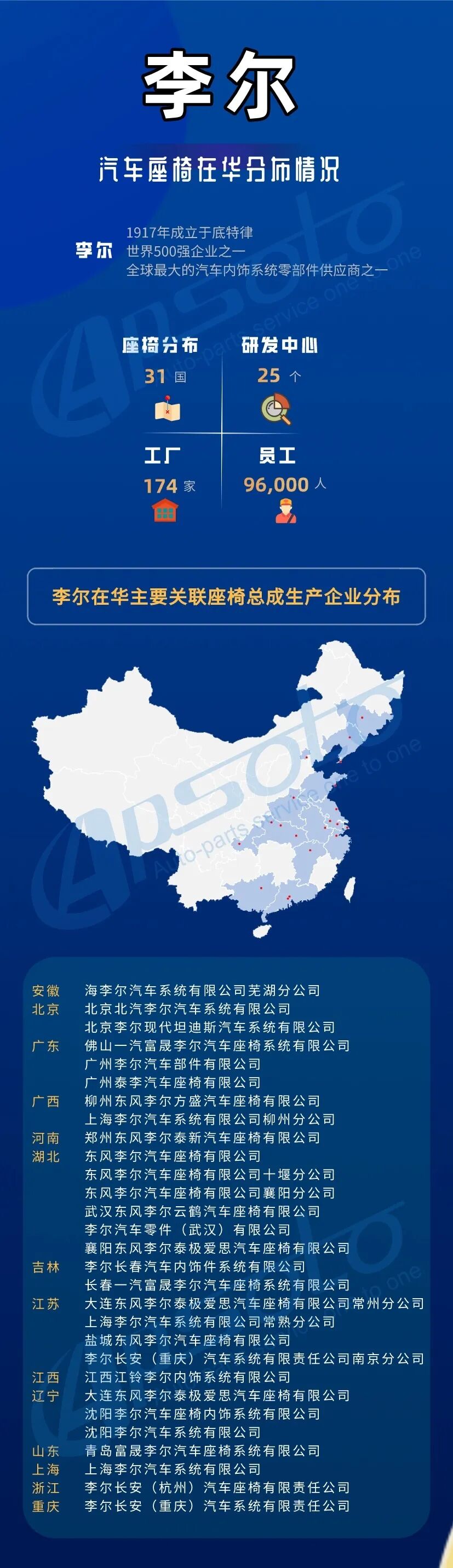 【干货】十大知名汽车座椅企业在华生产公司分布