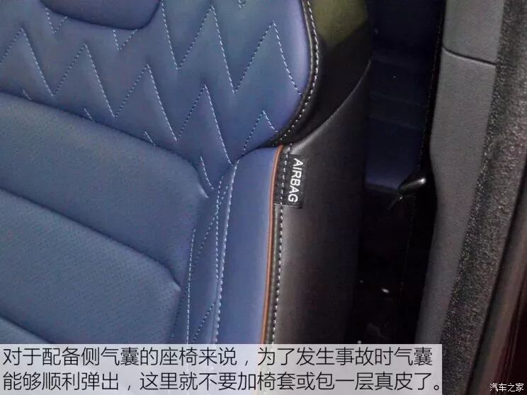 现在越来越多的车型会配备侧安全气囊,在侧安全气囊的安装位置会对表层皮革材质的缝线使用特殊强度的材质,确保发生意外时能够迅速的爆开,为驾乘人员提供安全保障。所以在这里我们并不建议对于配备该功能的座椅再额外的加装真皮或者椅套了,这样才能使得气囊能够快速的弹出,在第一时间为乘员提供保护。