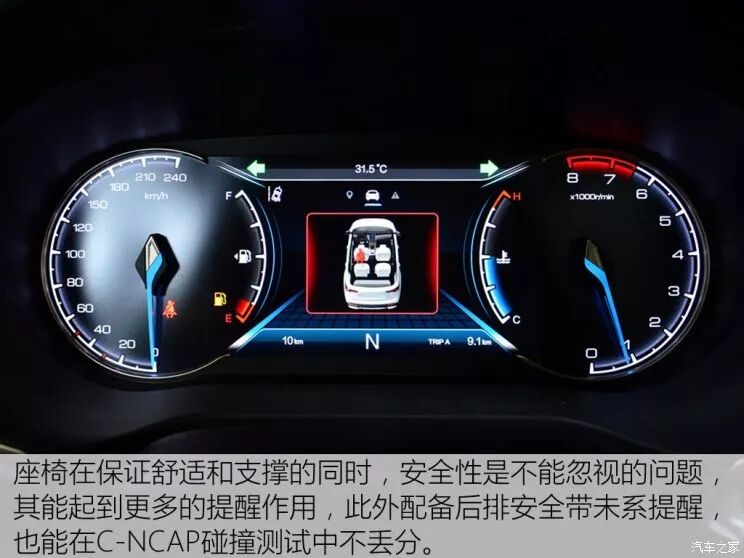 欧尚COS1°(科赛)这款车还配备了后排安全带未系提醒,目前配备该功能的车型并不多。这项功能的实现需要有两个前提条件,一是要达到35公斤以上,二是九种常规不同坐姿的触发试验。对于这类关乎安全性的细节功能,我们建议越来越多的车都有配备。
