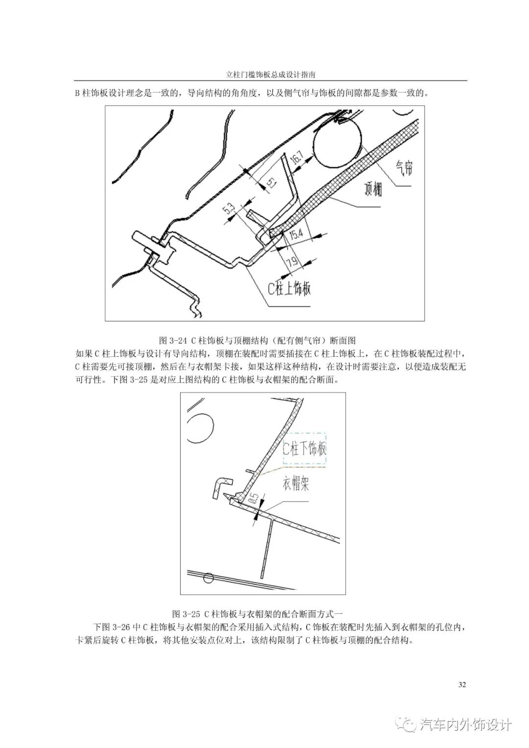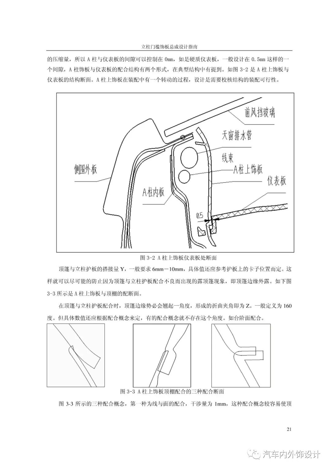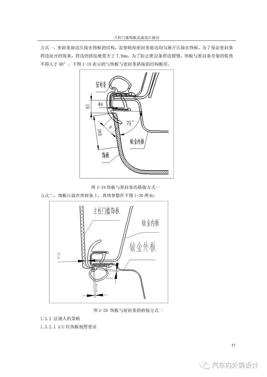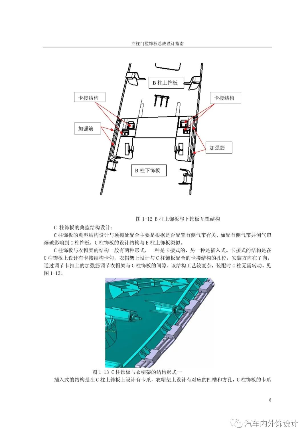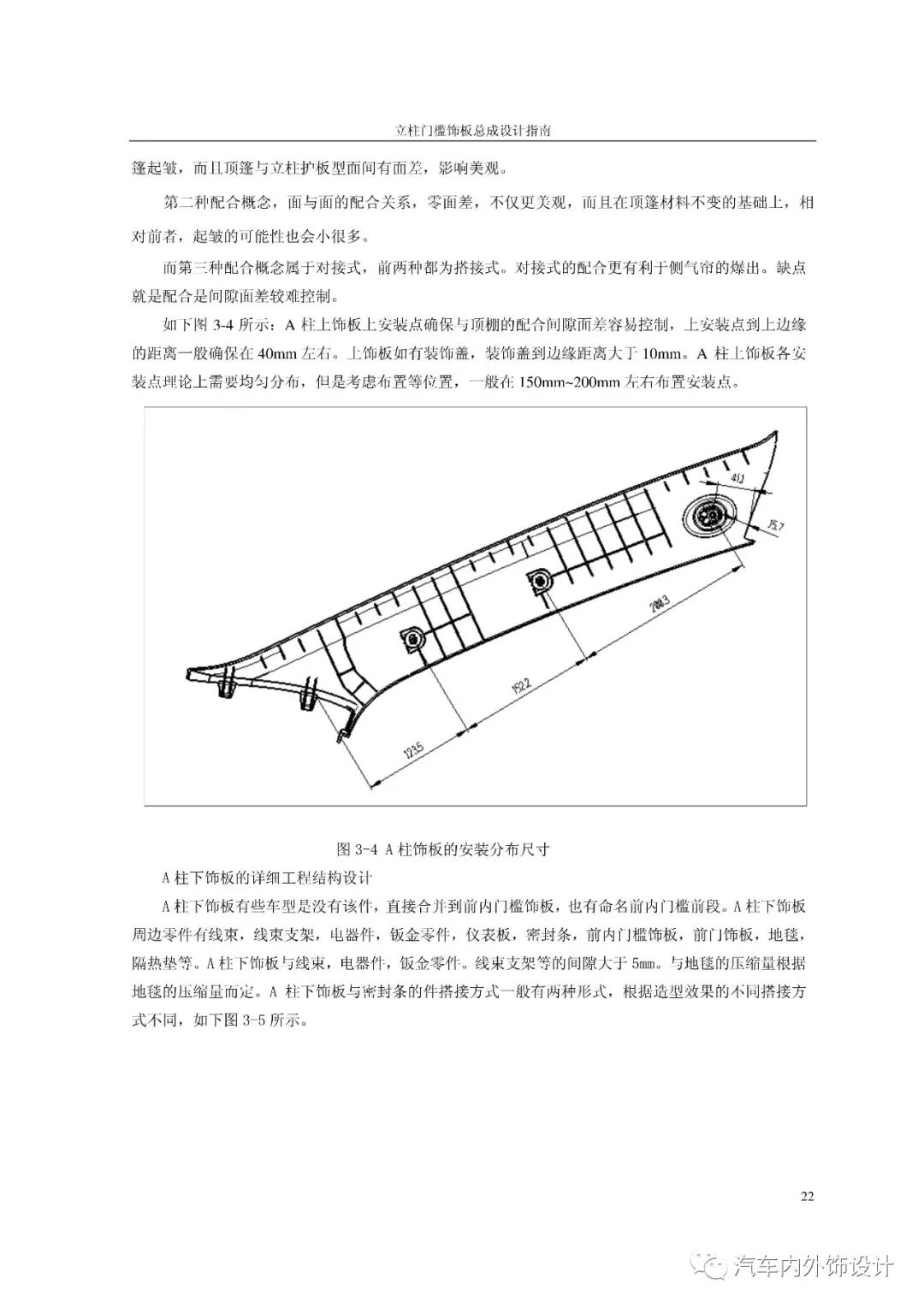 立柱饰板系统:简称立柱饰板,是包覆车身立柱内钣金的主要装饰件。立柱饰板包括A柱上饰板、A柱下饰板、B柱上饰板、B柱下饰板、C柱上饰板、C柱下饰板、D柱上饰板、D柱下饰板等。由于A、B、C、D柱饰板等结构形式以及与周边零件的匹配界面是比较类似,本文把A、B、C、D柱饰板合在一起制定技术规范,以对立柱饰板的设计提供指导。
