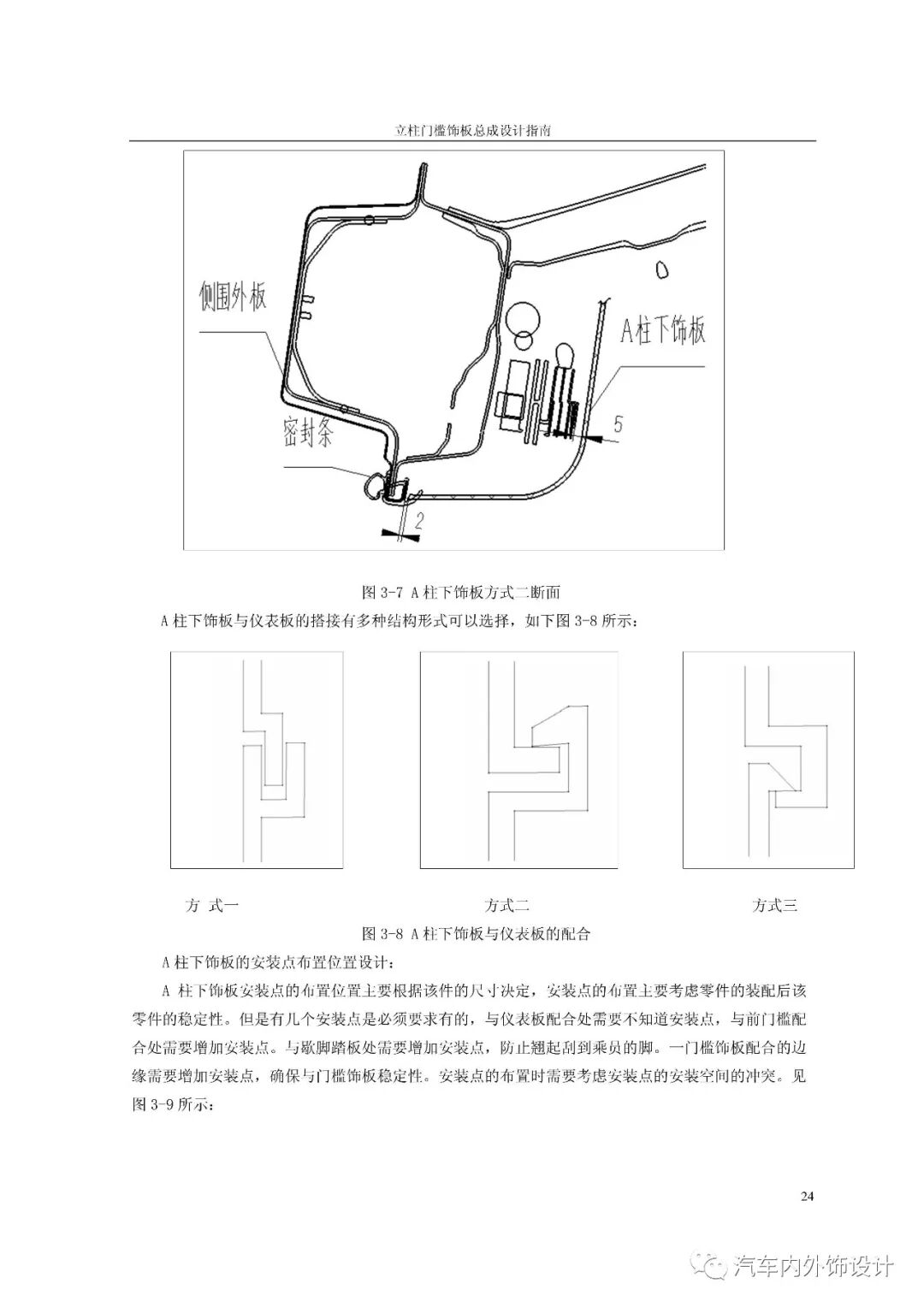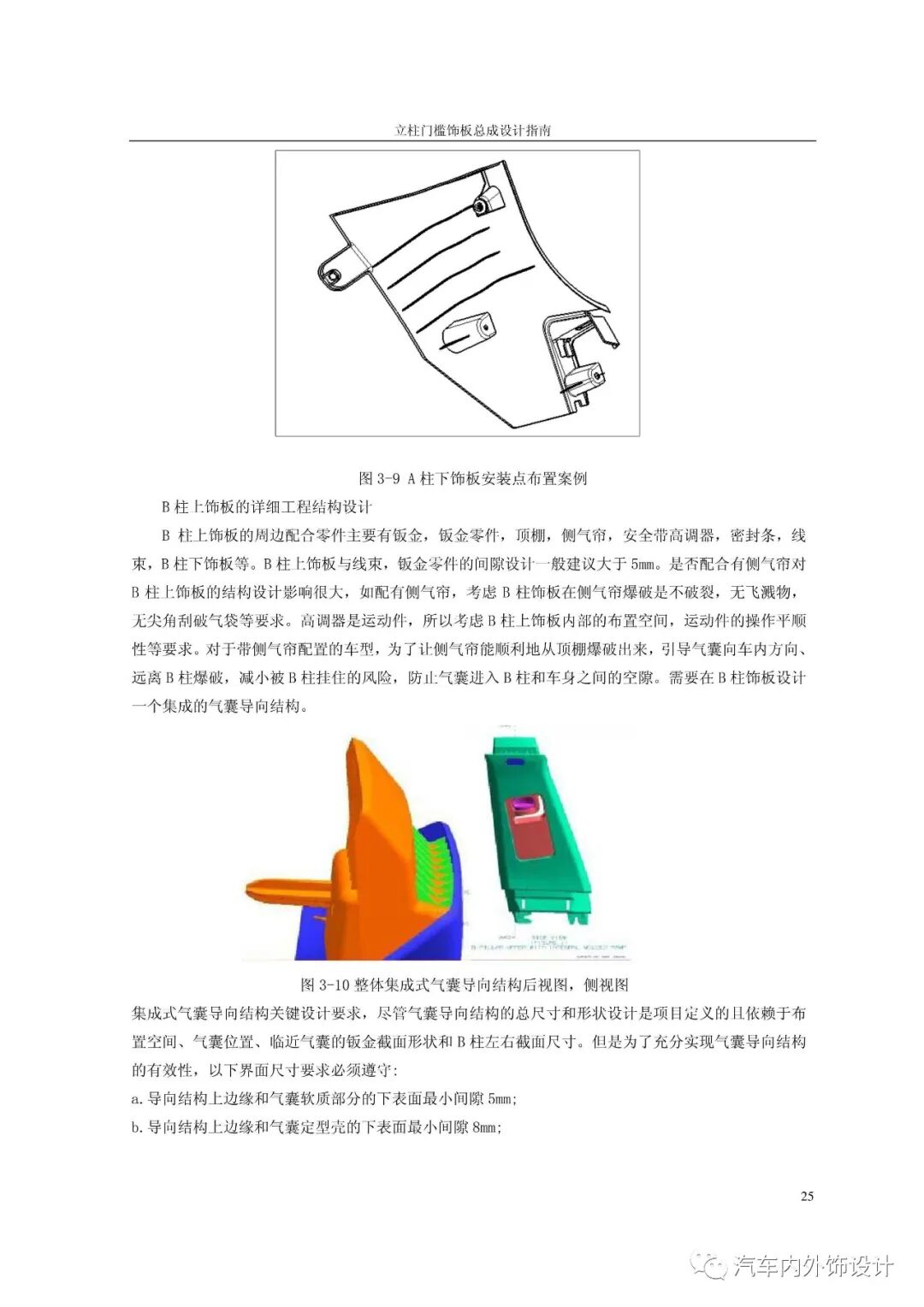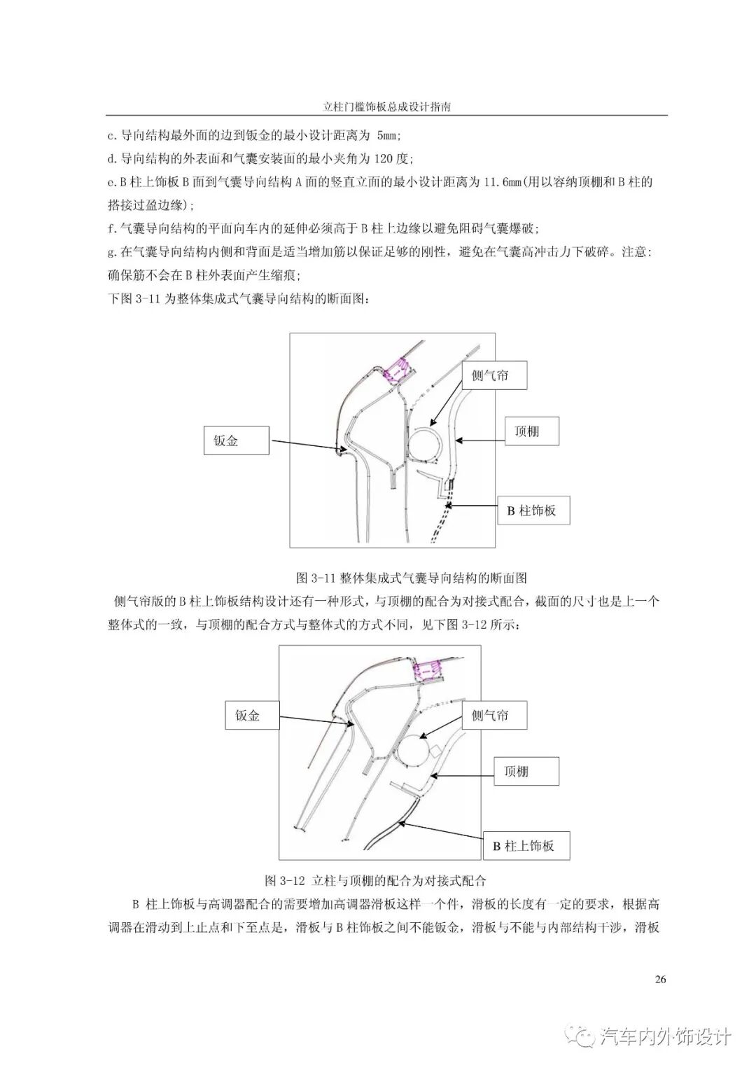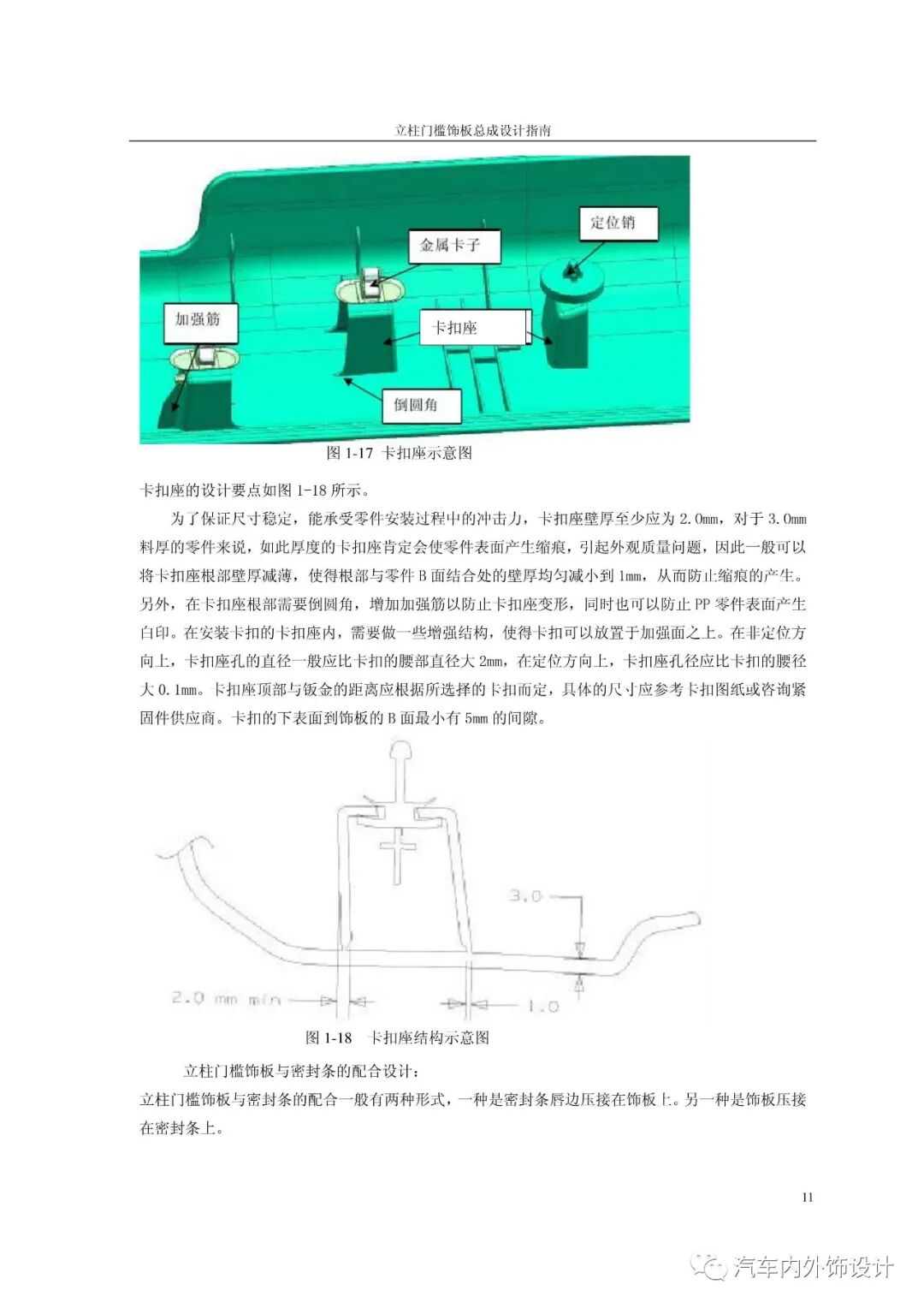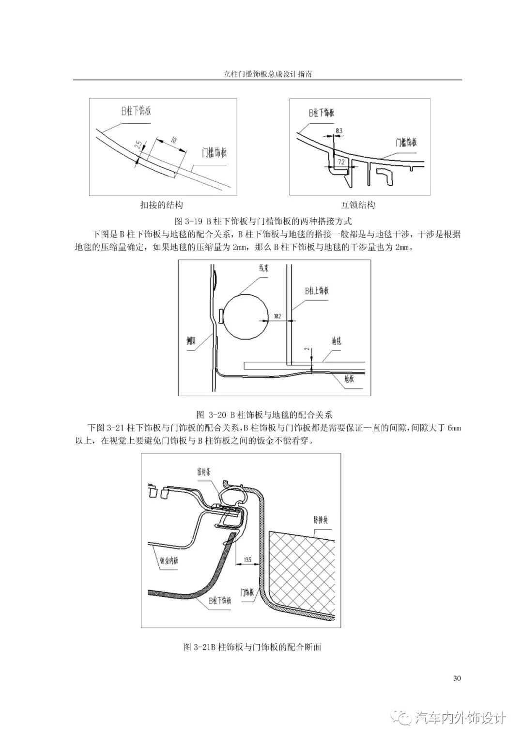 立柱饰板系统:简称立柱饰板,是包覆车身立柱内钣金的主要装饰件。立柱饰板包括A柱上饰板、A柱下饰板、B柱上饰板、B柱下饰板、C柱上饰板、C柱下饰板、D柱上饰板、D柱下饰板等。由于A、B、C、D柱饰板等结构形式以及与周边零件的匹配界面是比较类似,本文把A、B、C、D柱饰板合在一起制定技术规范,以对立柱饰板的设计提供指导。