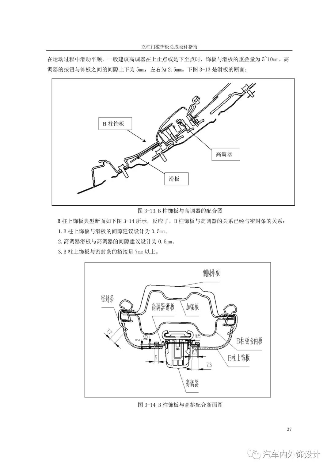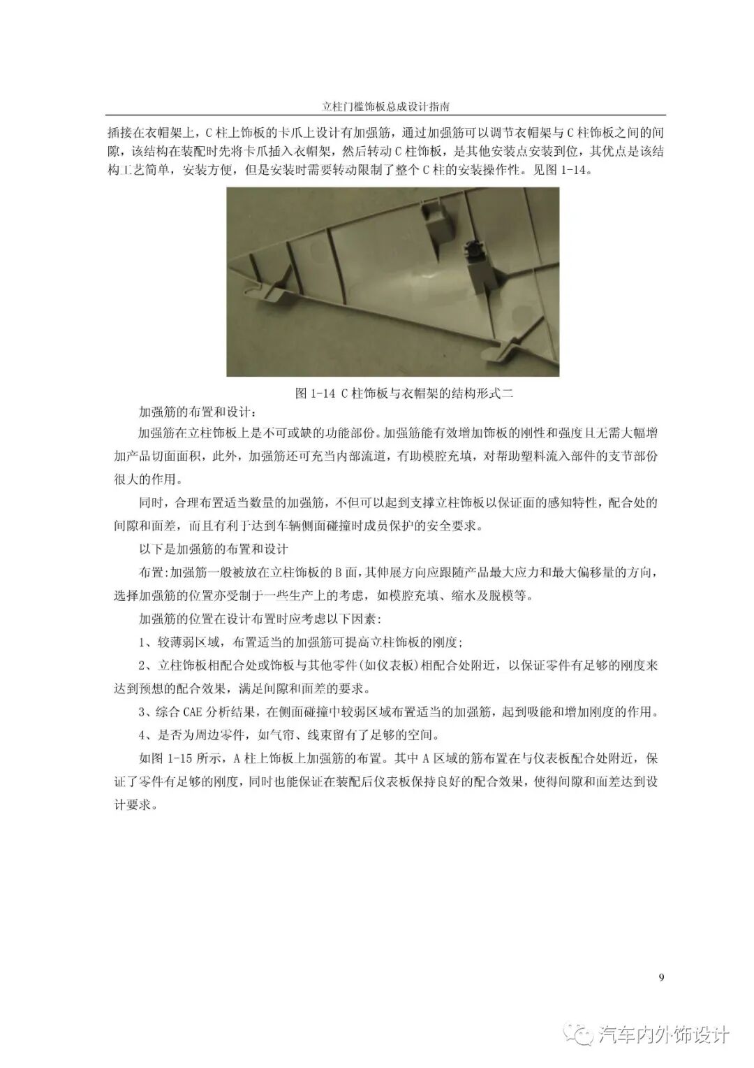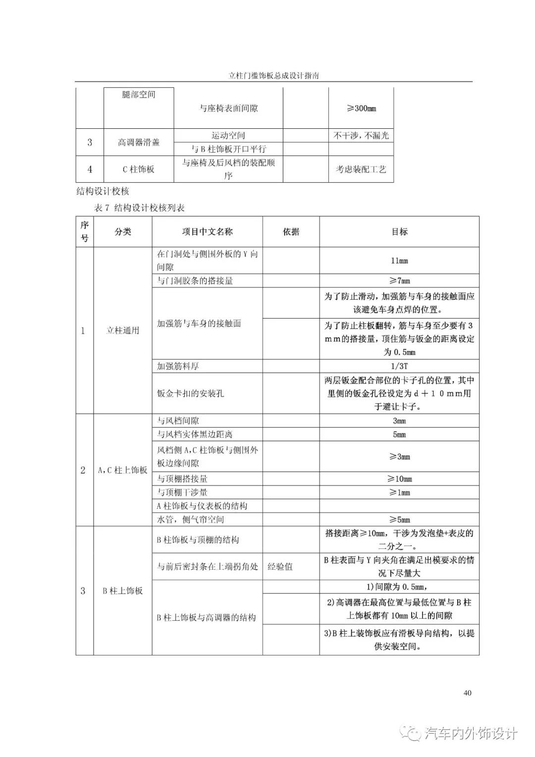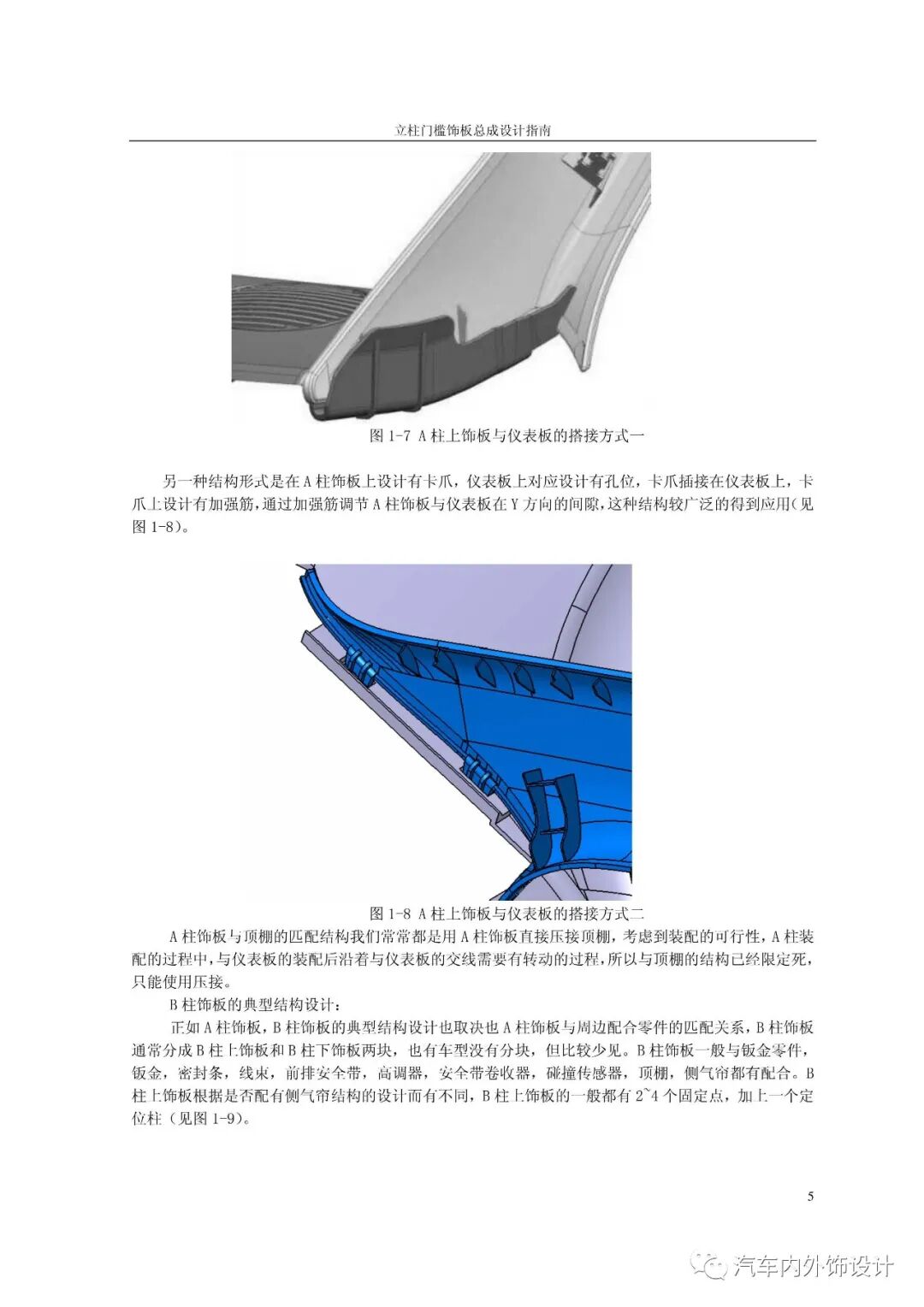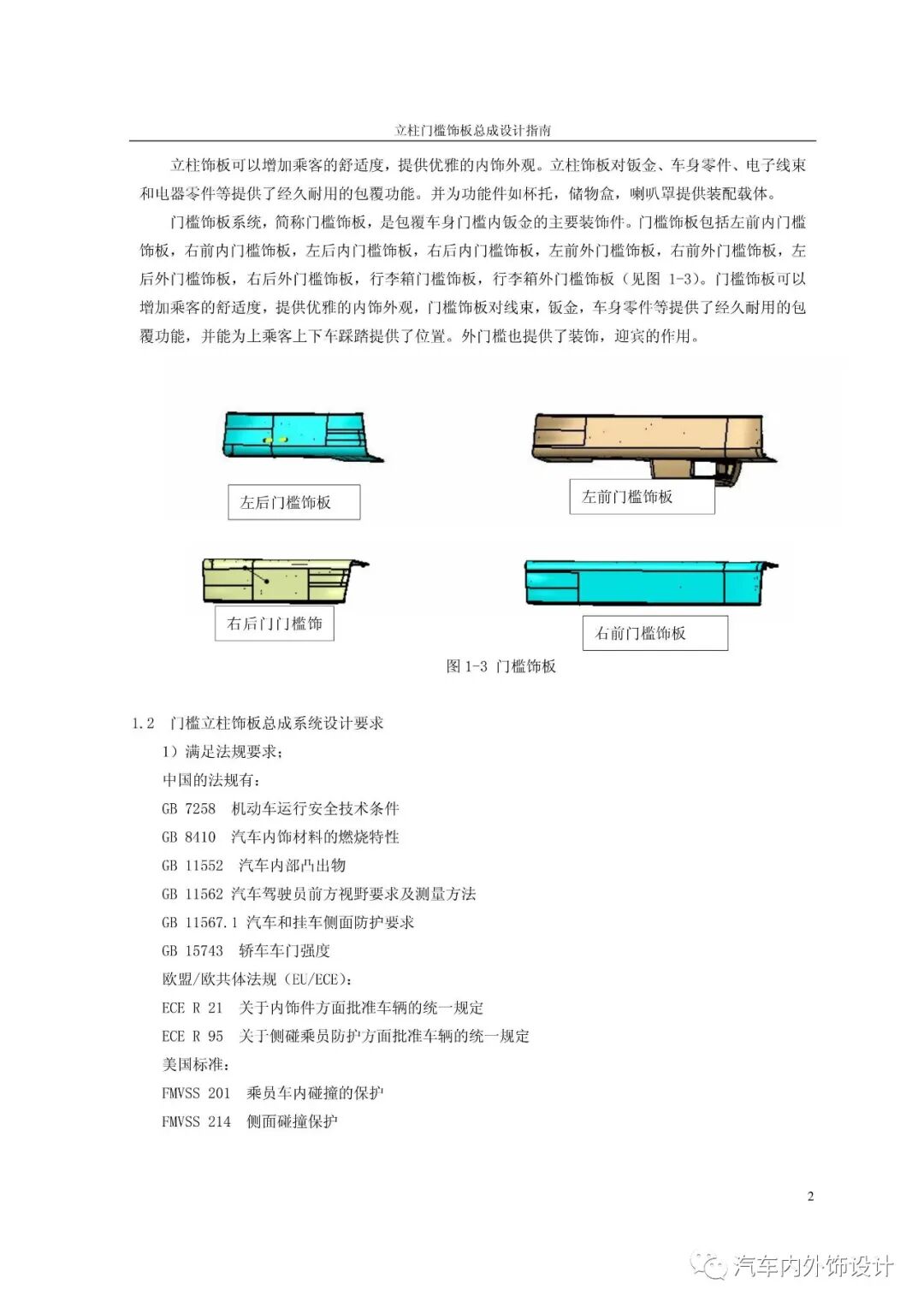 立柱饰板系统:简称立柱饰板,是包覆车身立柱内钣金的主要装饰件。立柱饰板包括A柱上饰板、A柱下饰板、B柱上饰板、B柱下饰板、C柱上饰板、C柱下饰板、D柱上饰板、D柱下饰板等。由于A、B、C、D柱饰板等结构形式以及与周边零件的匹配界面是比较类似,本文把A、B、C、D柱饰板合在一起制定技术规范,以对立柱饰板的设计提供指导。