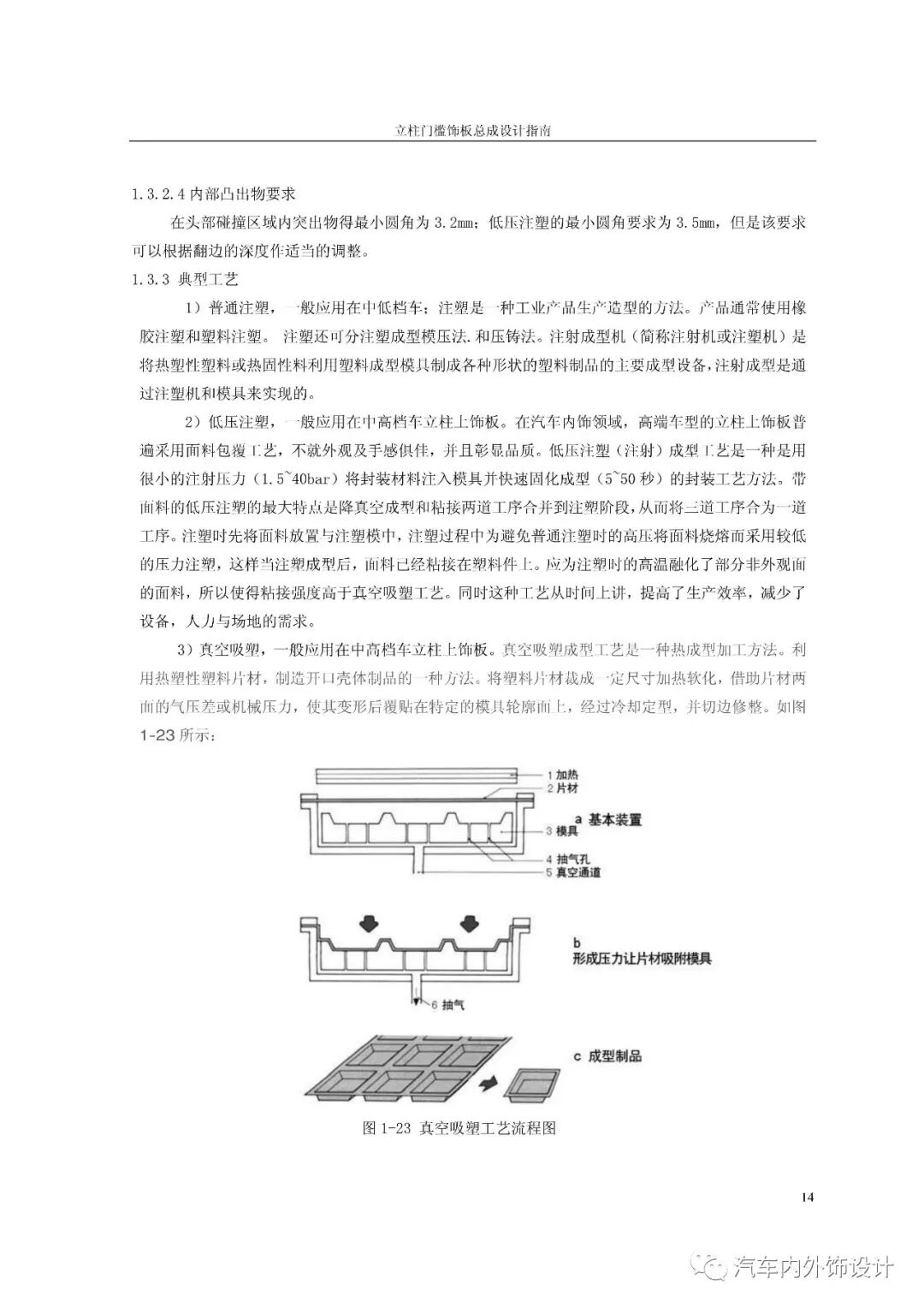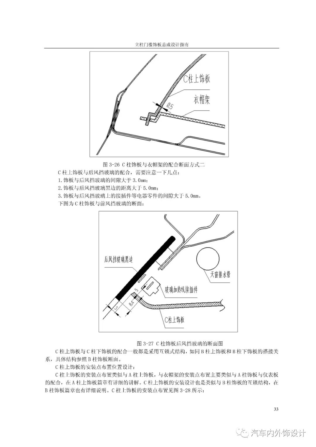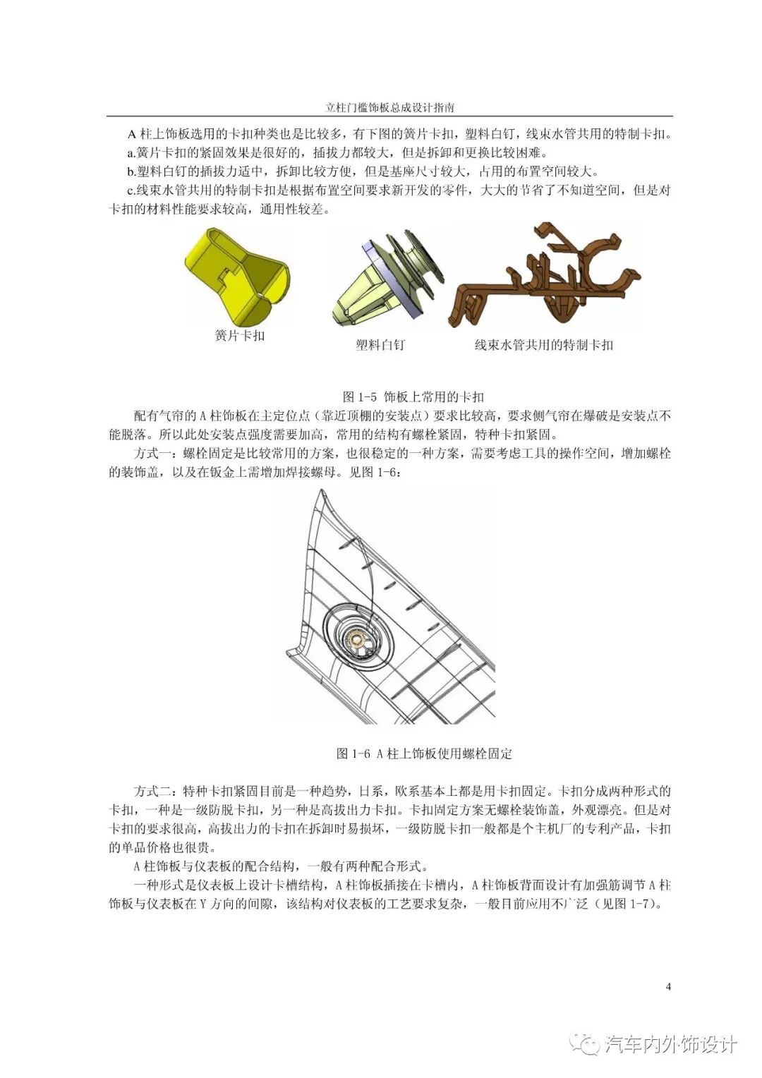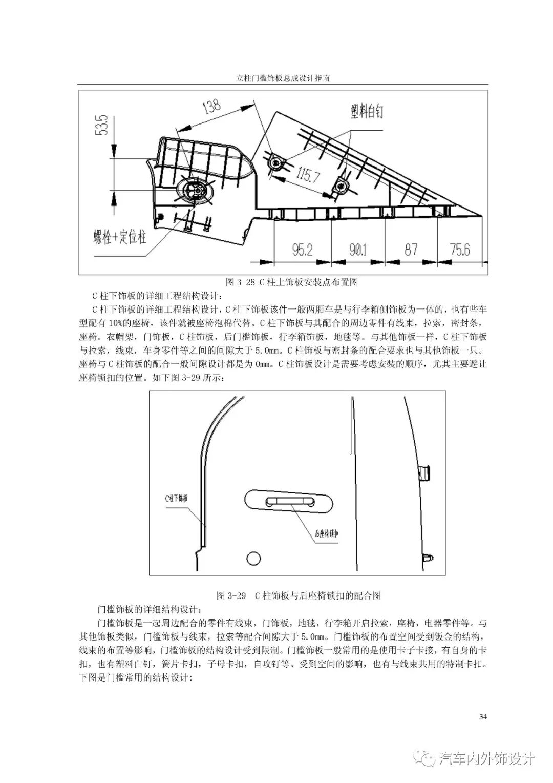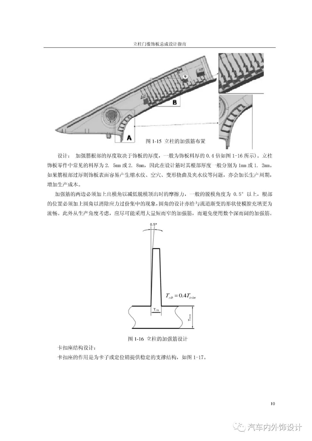 立柱饰板系统:简称立柱饰板,是包覆车身立柱内钣金的主要装饰件。立柱饰板包括A柱上饰板、A柱下饰板、B柱上饰板、B柱下饰板、C柱上饰板、C柱下饰板、D柱上饰板、D柱下饰板等。由于A、B、C、D柱饰板等结构形式以及与周边零件的匹配界面是比较类似,本文把A、B、C、D柱饰板合在一起制定技术规范,以对立柱饰板的设计提供指导。