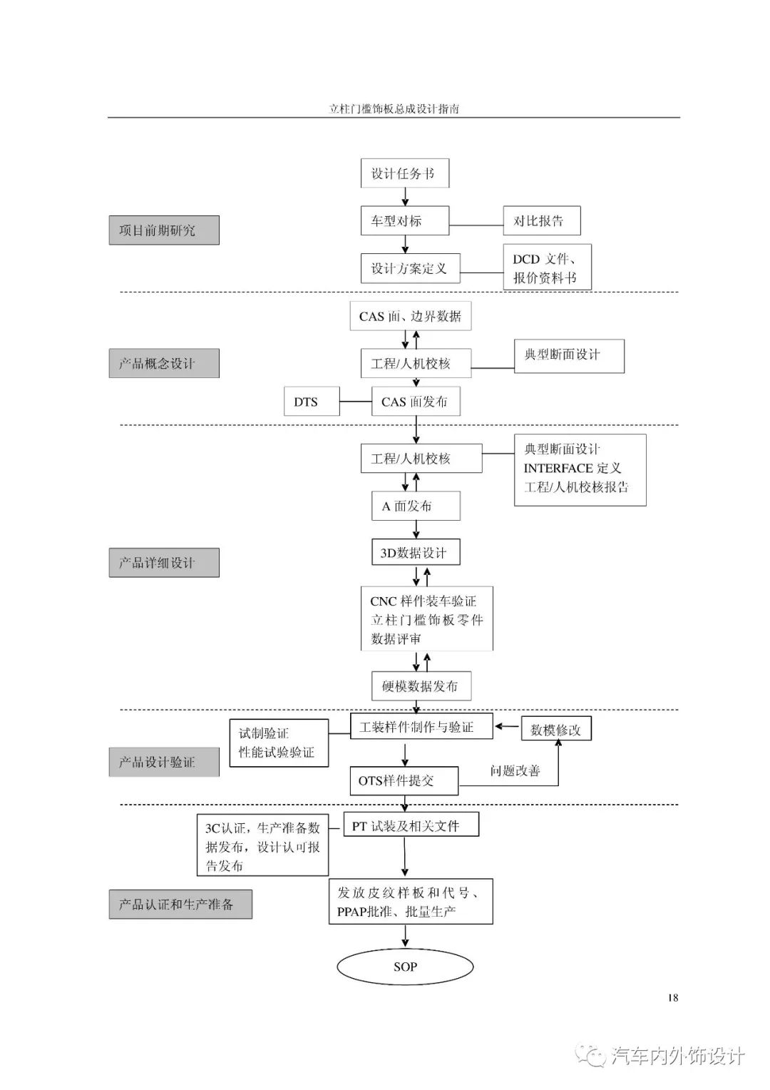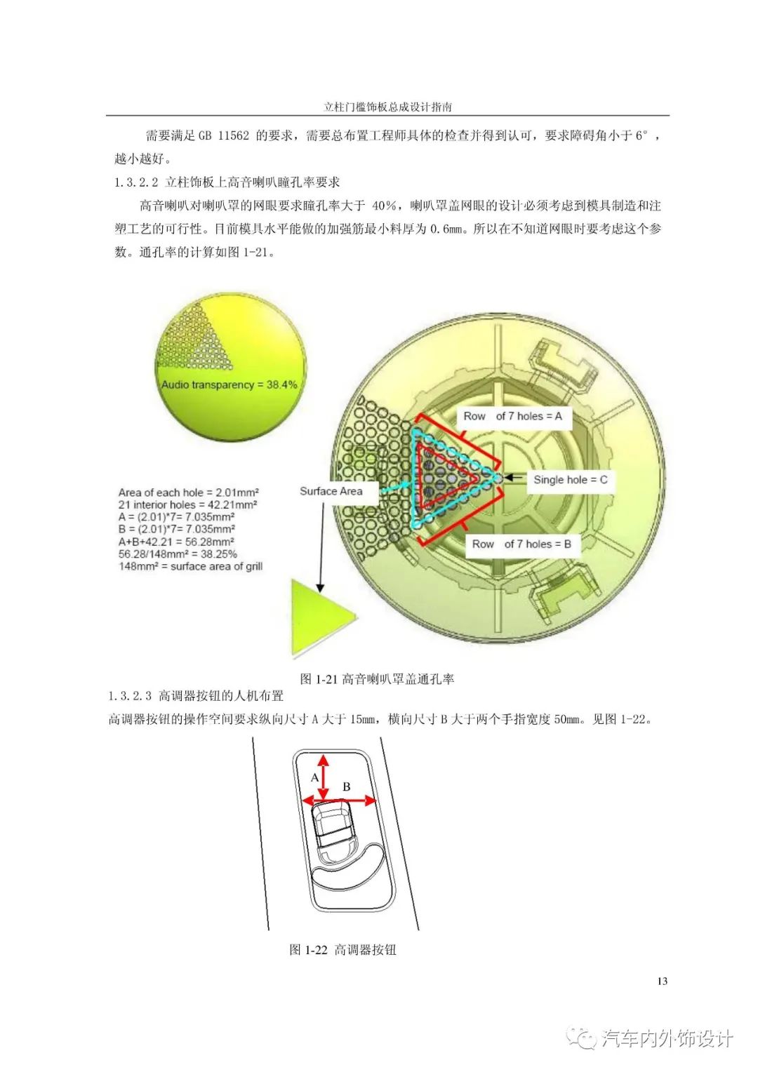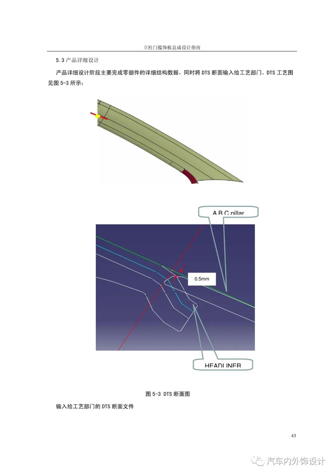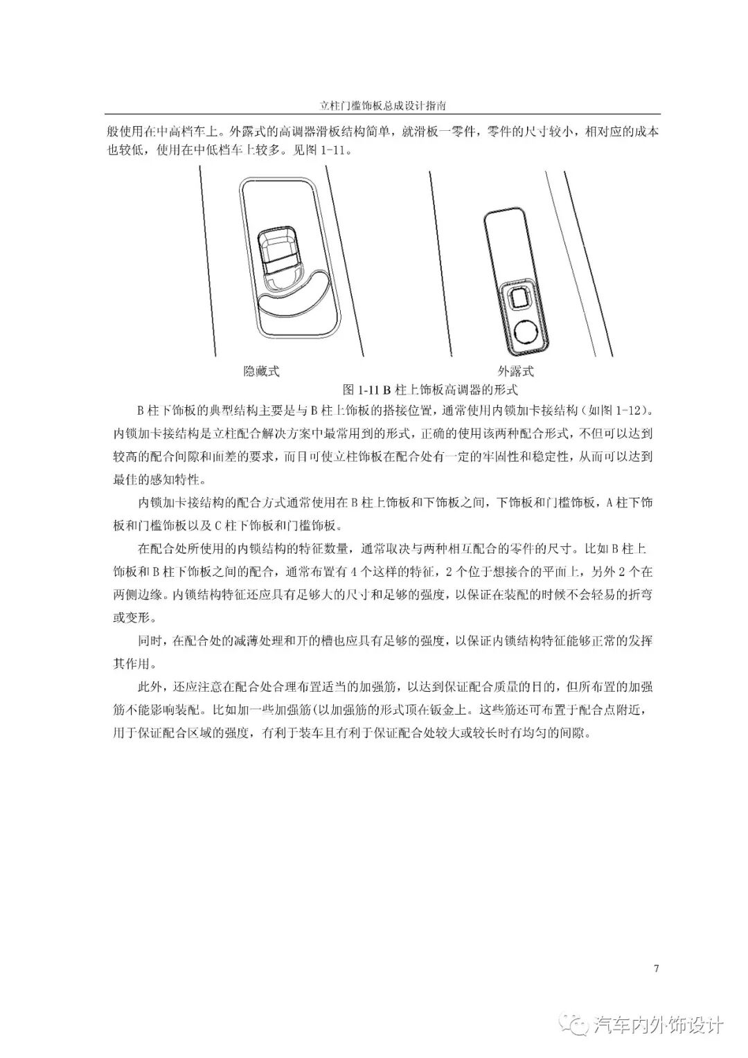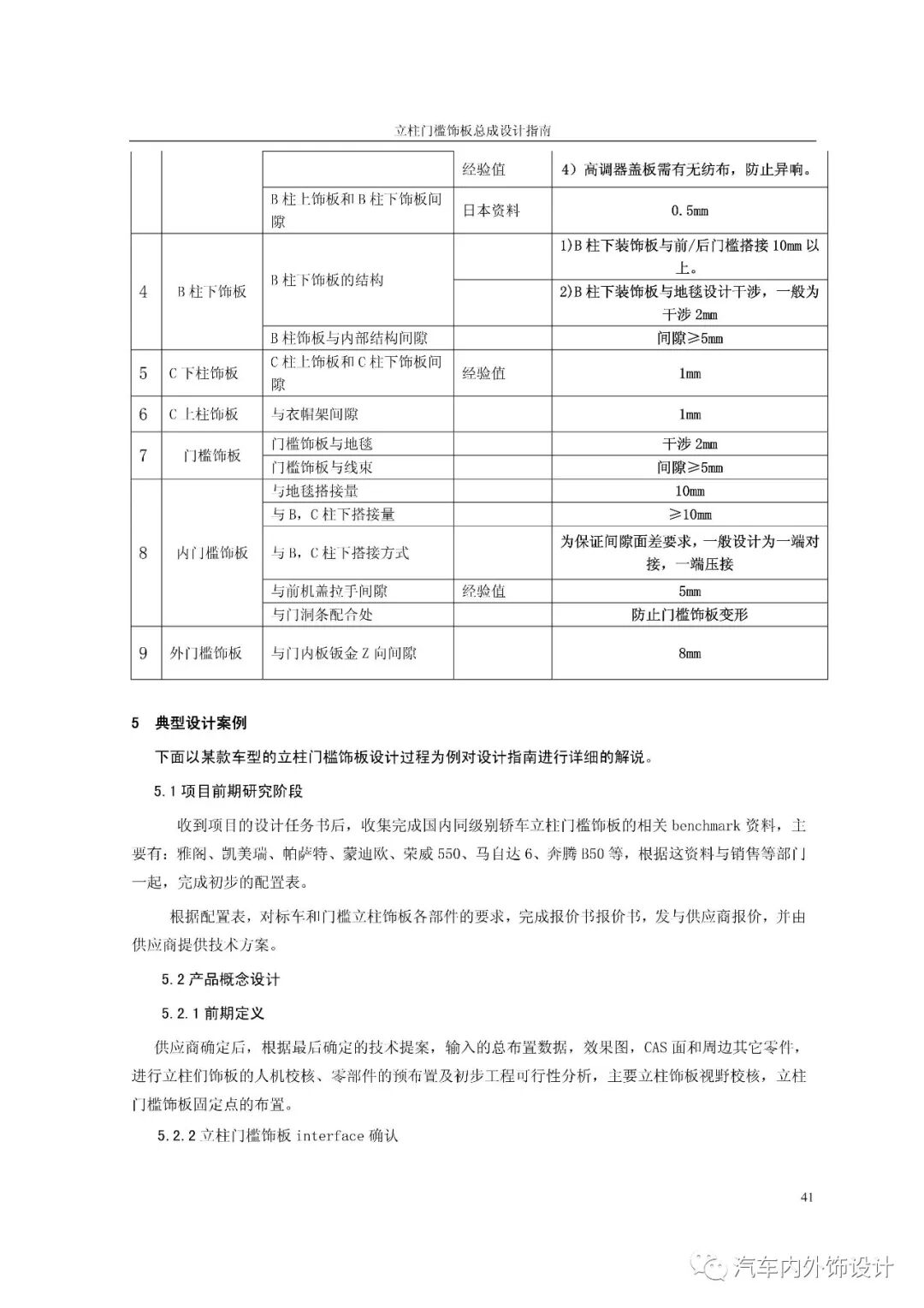 立柱饰板系统:简称立柱饰板,是包覆车身立柱内钣金的主要装饰件。立柱饰板包括A柱上饰板、A柱下饰板、B柱上饰板、B柱下饰板、C柱上饰板、C柱下饰板、D柱上饰板、D柱下饰板等。由于A、B、C、D柱饰板等结构形式以及与周边零件的匹配界面是比较类似,本文把A、B、C、D柱饰板合在一起制定技术规范,以对立柱饰板的设计提供指导。