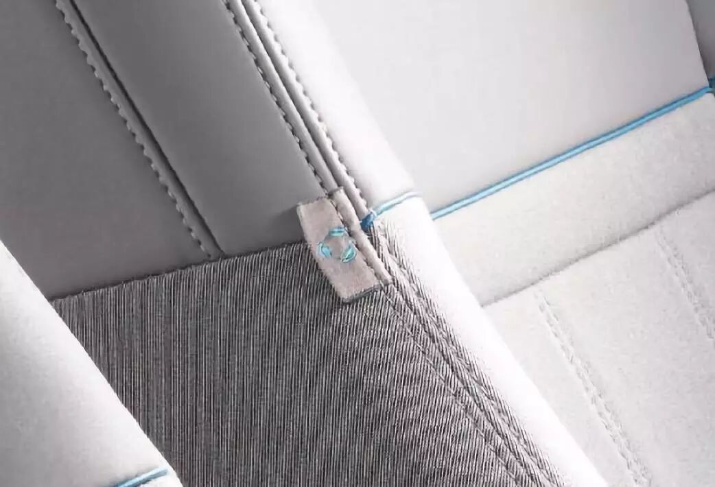 当时还有一种选择是将具有粗纺效果的羊毛混纺织物与合成绒面革(再生聚酯微纤维)一起使用。根据路虎揽胜的说法,如果采用这个方案相当于53个塑料瓶被装进车辆,因此他们舍弃了。