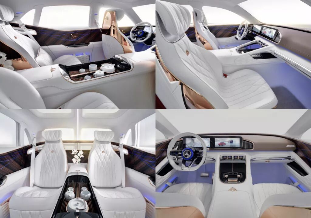 对于白色座椅的终极评估,只需看看Mercedes-Maybach的终极豪华概念车,它充分体现了清爽的白色座椅的时尚,四个豪华座椅由水晶白的纳帕皮革和玫瑰金缝合制成,再加上座椅靠背上的闪闪发光的玫瑰金,营造了非常舒适的内饰氛围。