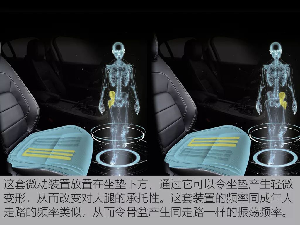 接下来我们来看看捷豹路虎的这项座椅黑科技:根据研究,由于社会发展,人们的工作生活方式也在逐渐发生着改变。据统计,全球1/4(约14亿)的人口受到久坐的困扰,而久坐则会带来腰、腿部肌肉萎缩,从而带来潜在伤害的可能性。不仅如此,久坐还可能导致静脉栓塞(俗称经济舱综合症),严重的甚至可能导致死亡。对此,捷豹路虎的科学家提出了新的思路:通过在座椅上安装微动装置来实现让你产生“仿佛在走路”的感觉。