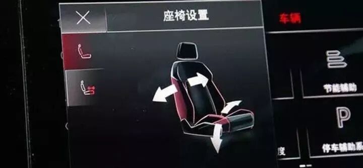 前排座椅可进行腿部和腰部的两侧调节,可适应不同身材的驾驶者,在中央屏幕中操作进行调节,这样不论身高、体重的差别都可以给驾驶者带来最安全和最舒适的感受。