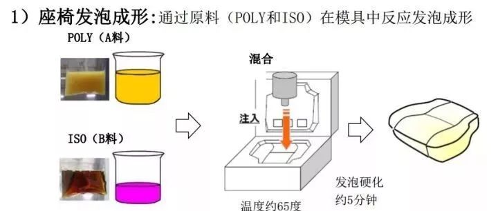 汽车座椅作为安全部件在被保护中起决定性作用,而座椅发泡在事故中能起到吸收成员与之碰撞的能量,达到很好保护乘员的作用。聚氨酯又叫PU。根据原料及配方的变化,可以出现不同的软硬度。有软质,半硬质,硬质的发泡,座椅上使用的基本上以软质为主。发泡的工艺流程为:开模→脱模→涂脱模剂→零件组装→原料注入→闭模→加入硬化→开模。其生产及产线布置一般为循环布置,且大多为多个车型同时混线生产。一个循环一般为几分钟。简单来说,发泡的形成就是聚合物分子链形成和增加的一个过程。